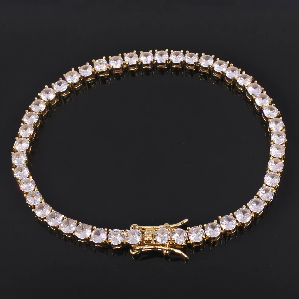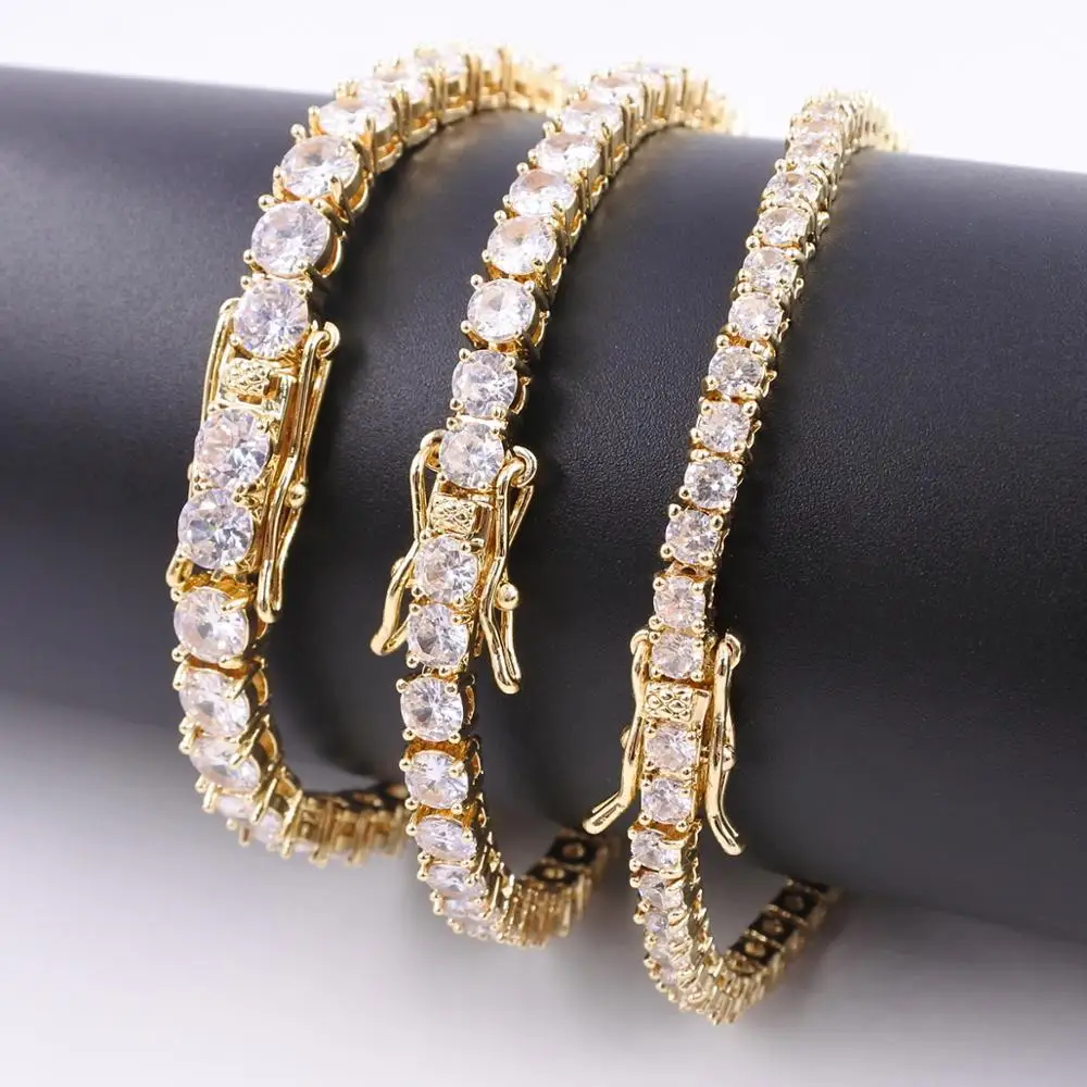 Высококачественная латунная цепочка из фианита aaa, Золотая цепь для тенниса, браслеты серебряного цвета в стиле хип-хоп, сверкающие Мужские Подарочные ювелирные изделия в виде рэпера