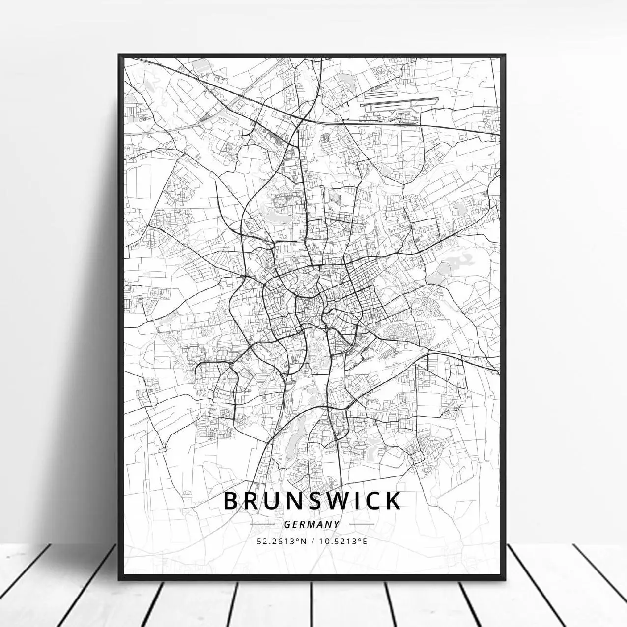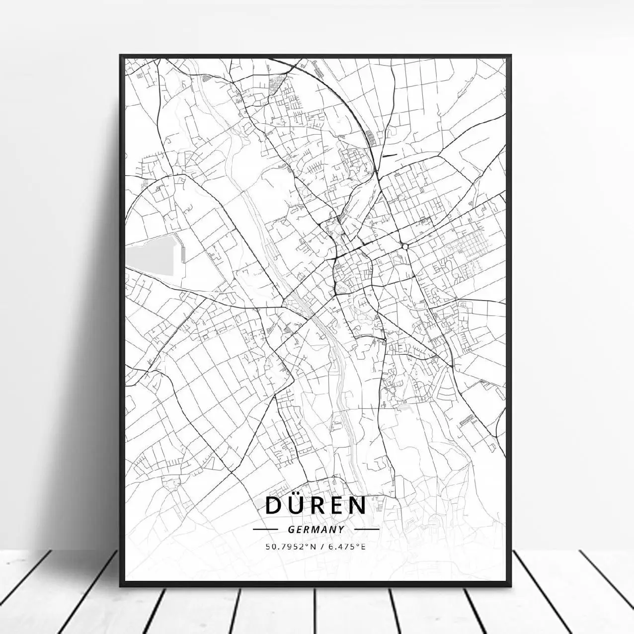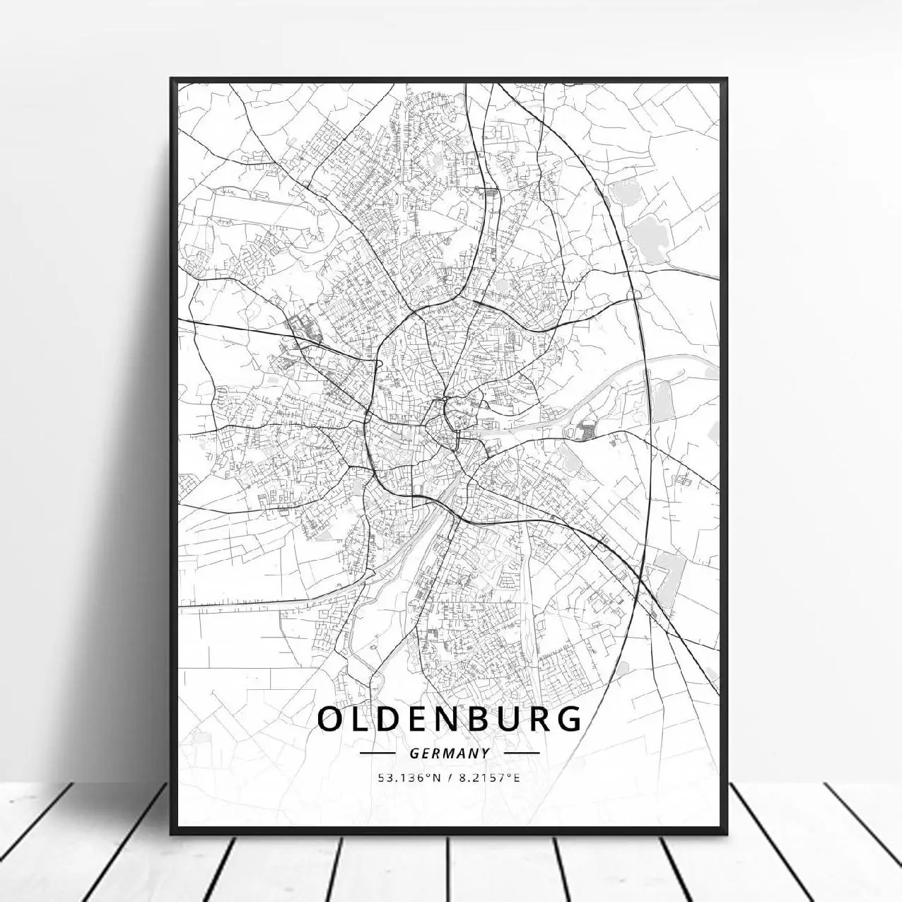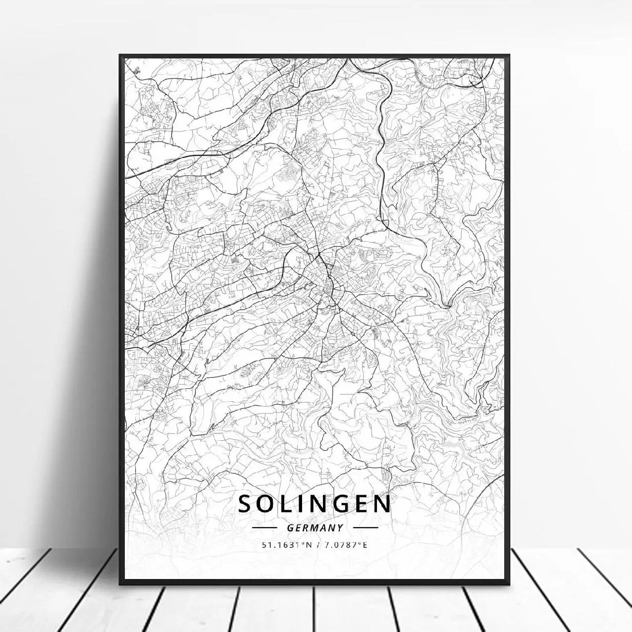 Веселья солинген Эссенс Ольденбург Брансуик дурен Германия холст Художественная карта Плакат