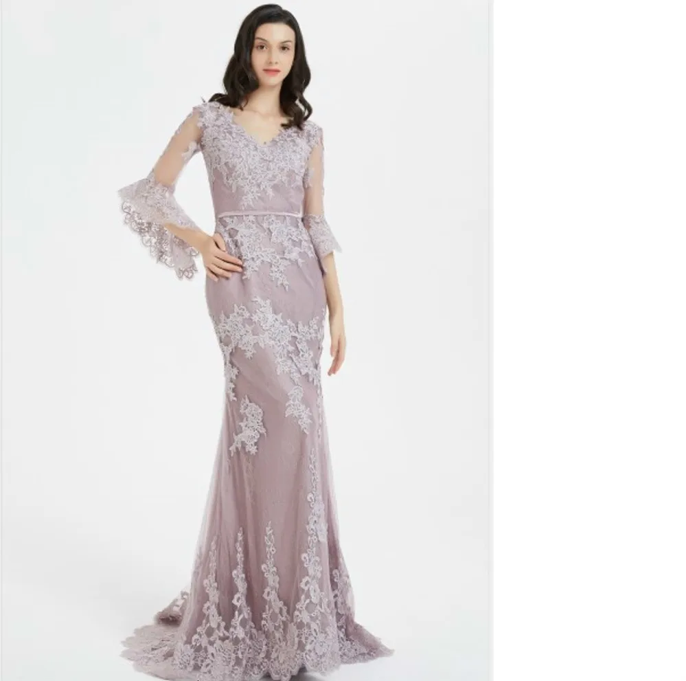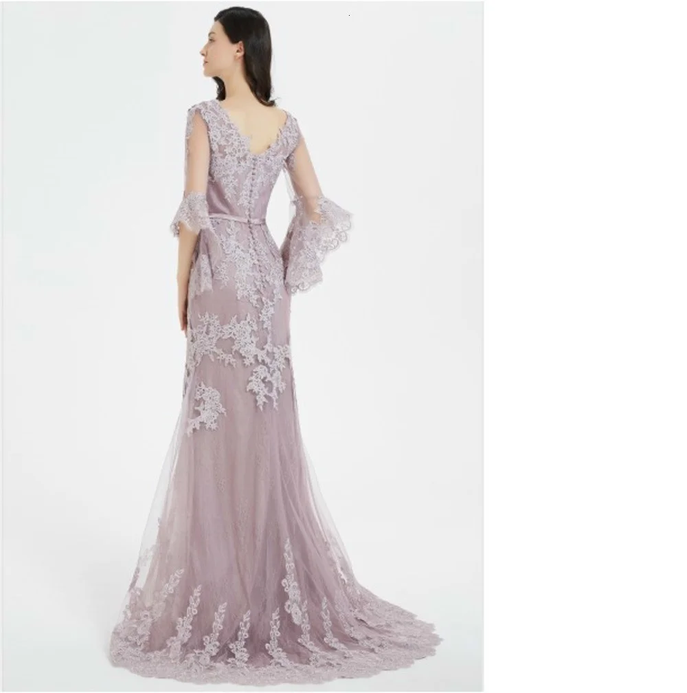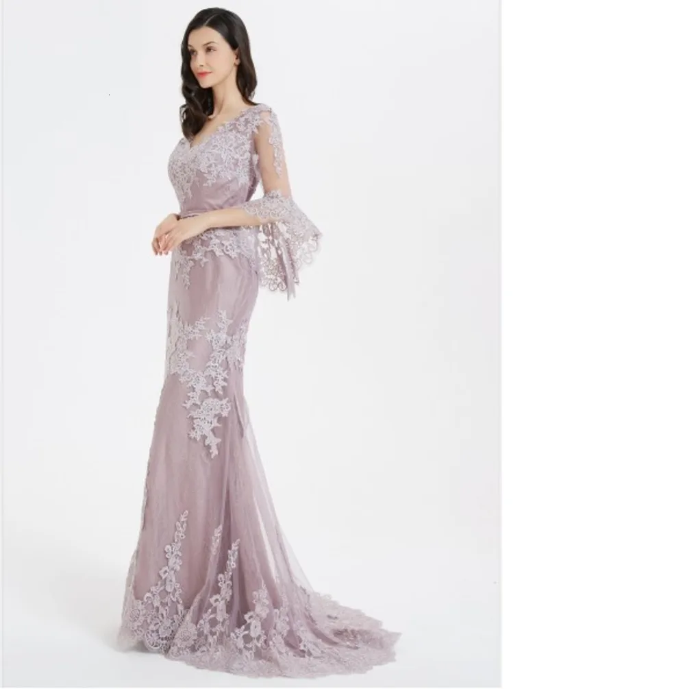 Вечерние платья, Новое Кружевное официальное платье с длинным рукавом, платье-Русалка с красным ковром, вечернее платье до пола