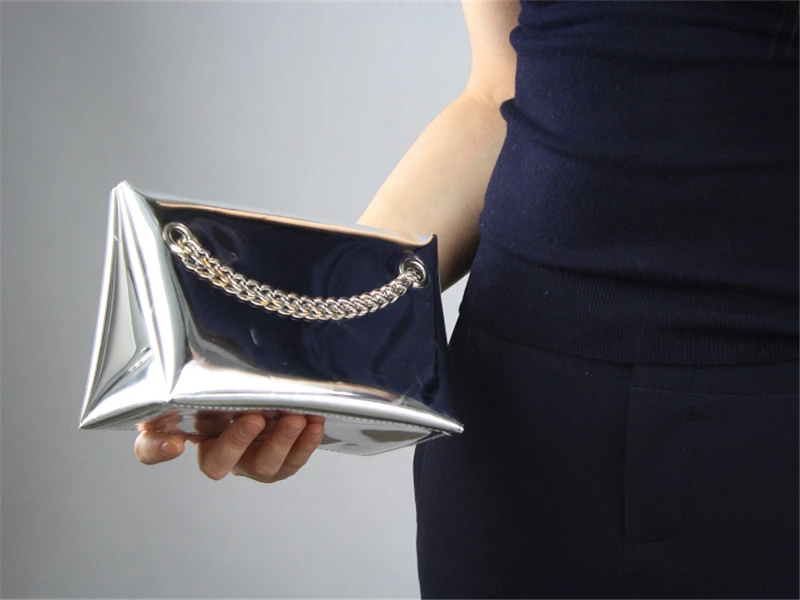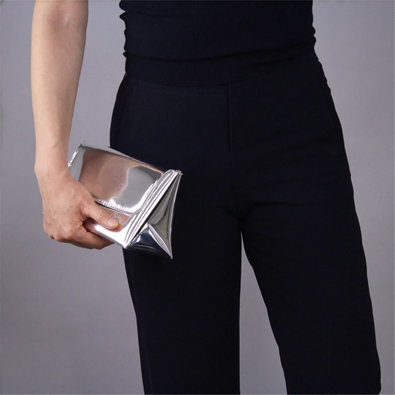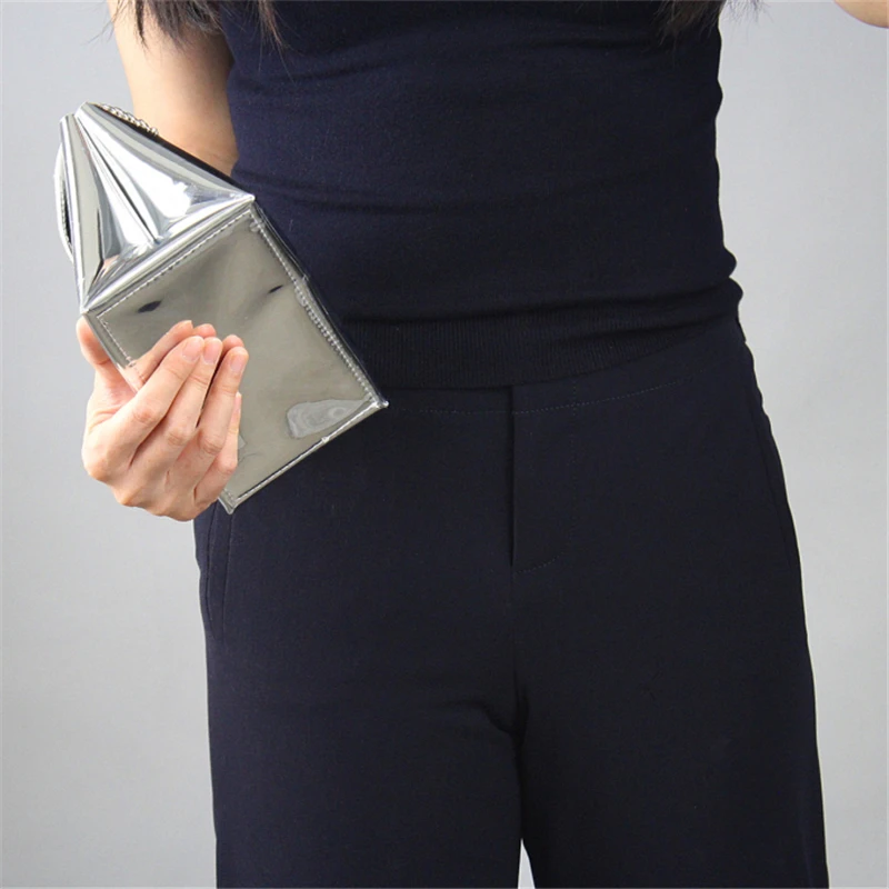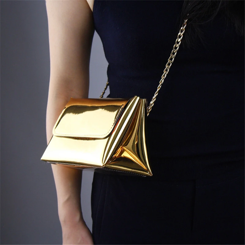 Зеркальный треугольный женский кошелек, клатч, роскошные сумки, женские дизайнерские Светоотражающие Сумки из искусственной кожи, мини сумки через плечо с клапаном, золотистого цвета