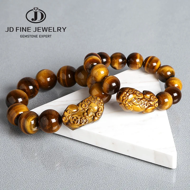 JD 8-16 мм Золотой Цвет Тигр глаз камень бусины браслет китайские товары на удачу чудовище Pixiu браслет Прямая поставка ювелирные изделия подарок