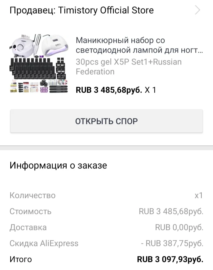 Заказывала на свой страх и риск,было очень страшно что придет набор в плохом состоянии Но пришло всё в отличном состоянии,поссылка пришла очень быстро и за это огромное спасибо Для новичка набор великолепный,я заказывала со скидкой во время черной пятницы,долго этот набор лежал в корзине,но теперь он у меня дома Есть один большой минус,провода на лампе и ногтевом аппарате очень короткие,но не критично *Позже дополню отзыв,заказала типсы для выкраски лаков. Как только они придут,выкрашу все лаки и покажу(цвета отпад) Магазин рекомендуюнадеюсь что мой отзыв поможет кому-нибудь..... Очень сильно боялась заказывать и понимаю что зря боялась В Красноярске только одна такая лампа стоит от 2000,так что не бойтесь и заказывайте