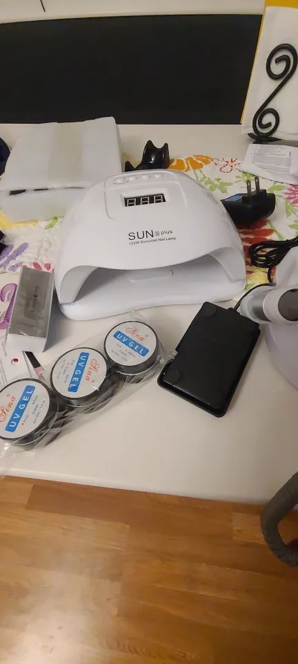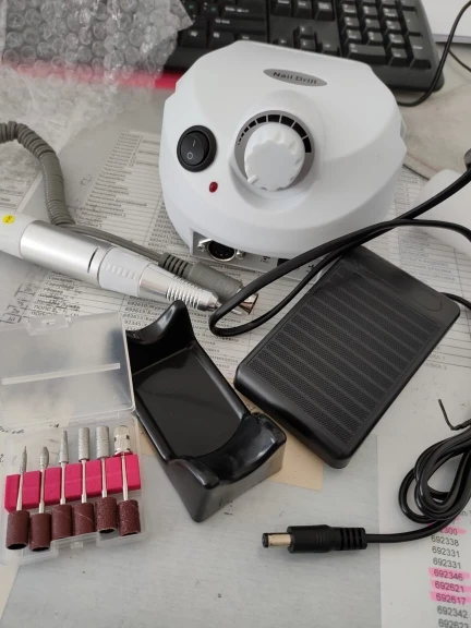 Набор очень хороший, доставка до двери быстрая, упакован хорошо всё пришло целое в рабочем состоянии, лампа свою работу выполнила на отлично есть функция автоматического включения, машинка очень хорошая мощности хватает, вибрации нет, педаль очень удобное дополнение, фрезы конечно не очень но для новичка самое то, лаки не потекли единственное их почему-то не 40штук а 36. В остальном набор очень хороший к преобретению рекомендую.