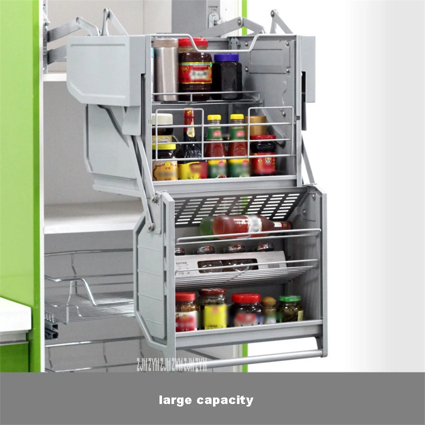 Подъемная корзина для кухонного шкафа, двухслойная большая емкость для холодильника