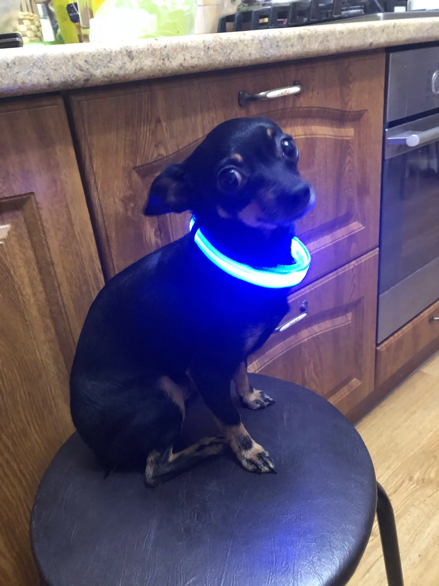 Шло долго, но ошейничек хороший, светит ярко, я довольна