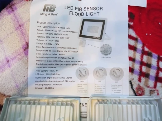 Заказал на 50 ватт - работает отлично, датчик срабатывает где-то метров с 10-12. Светит ярко, светло как днём. Фото снимал в 6 вечера, у нас в это время уже темень стоит. Так что рекомендую и товар, и честного продавца.