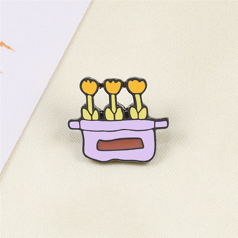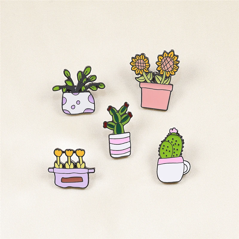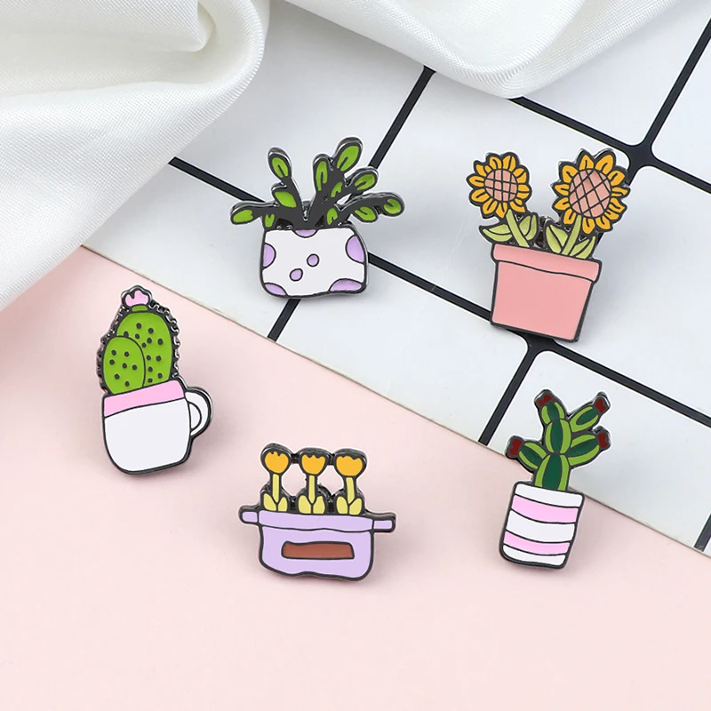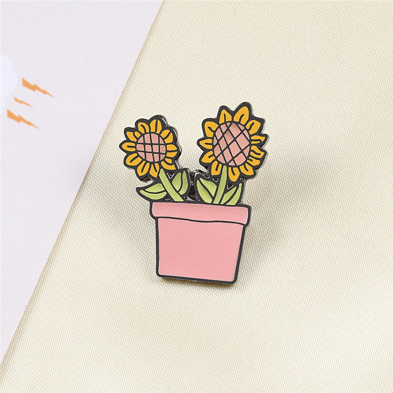 Металлическая эмалированная брошь с изображением подсолнуха в горшке, Заколки ювелирные аксессуары