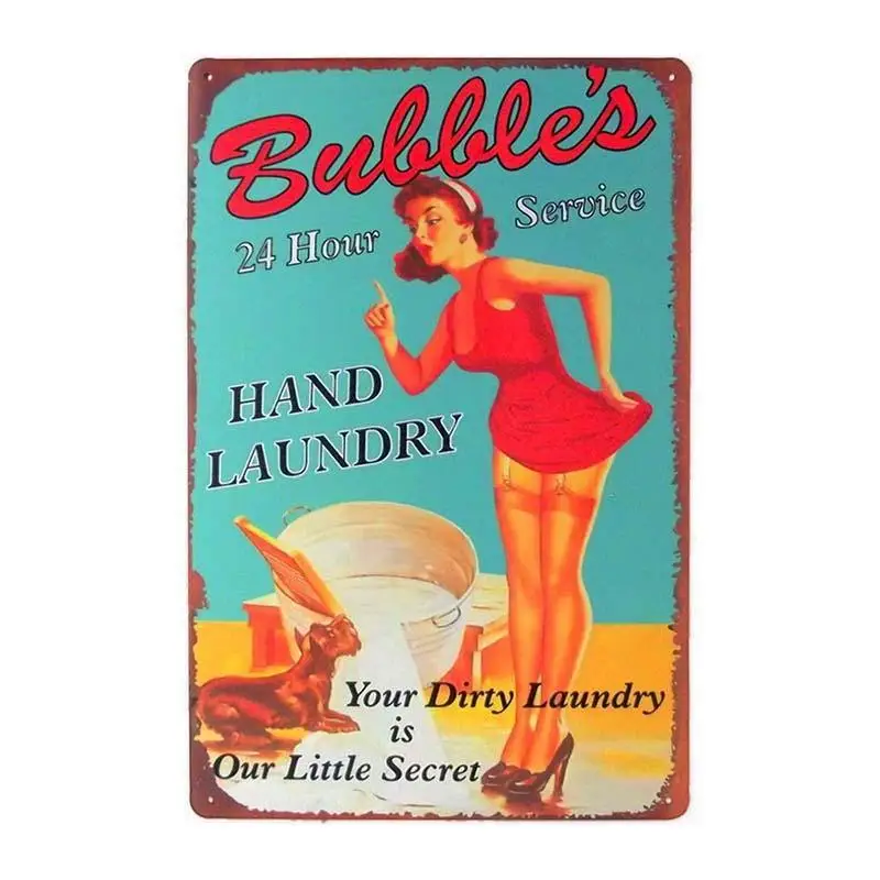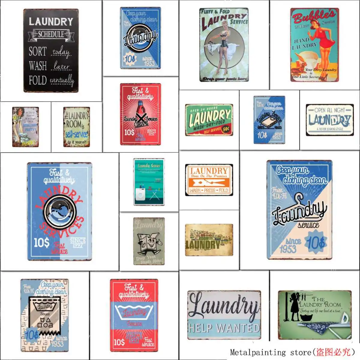 Ретро-табличка с надписью прачечной в стиле комиксов Fifties, Настенная декоративная металлическая тарелка, винтажный постер для белья, xcm