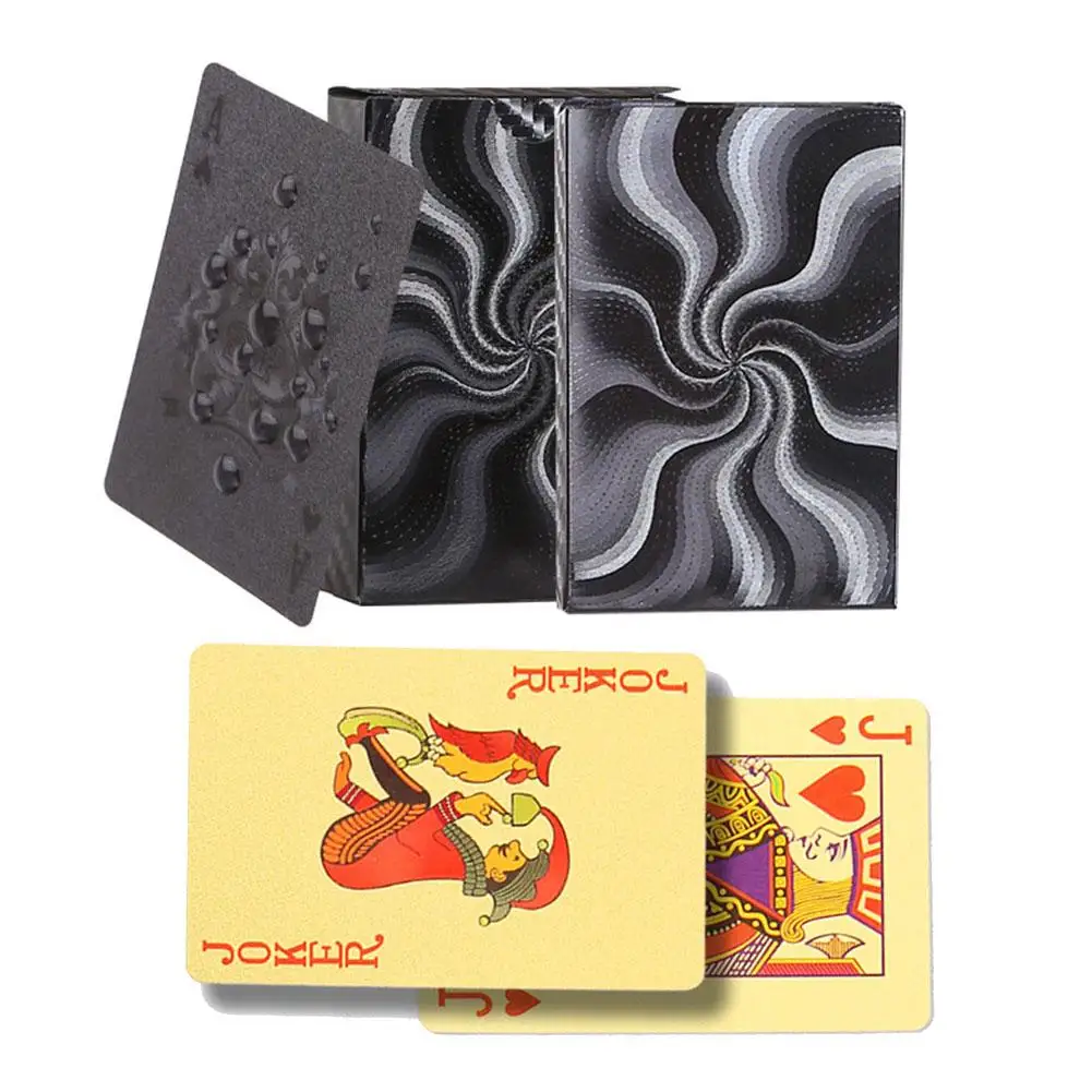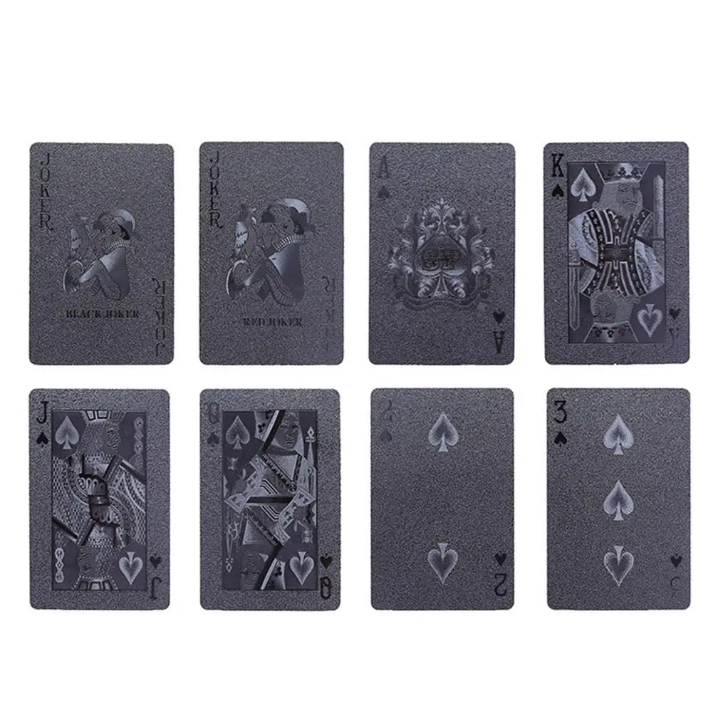 24K золотые черные игральные карты покер игра колода Золотая фольга покер набор пластиковые волшебные карты водостойкие карты и защитный чехол держатель