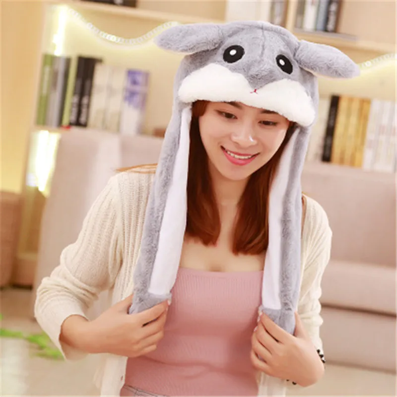Новогодняя шапка-кролик 2022, милая мультяшная игрушка с движущимися ушками, шапка, подушка безопасности, милая Забавная детская плюшевая игрушка, подарок на день рождения, шапка для девочек