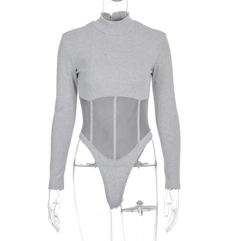 Женское Сетчатое боди Dulzura, облегающее трикотажное боди с длинным рукавом и высоким воротником, одежда для улицы, Осень-зима 2019