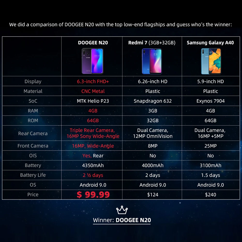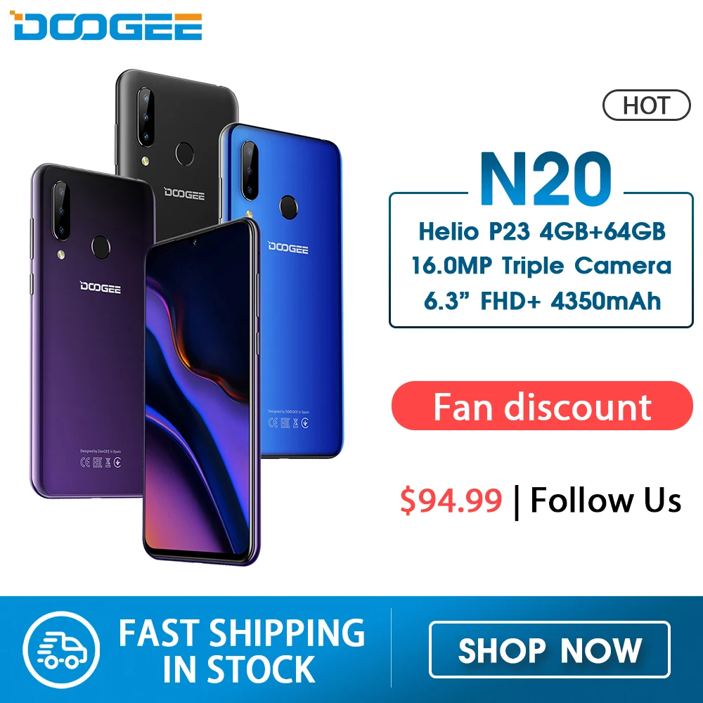 DOOGEE N20 смартфон с 6,3-дюймовым дисплеем, восьмиядерным процессором MT6763, ОЗУ 4 Гб, ПЗУ 16 МП, 4350 мАч