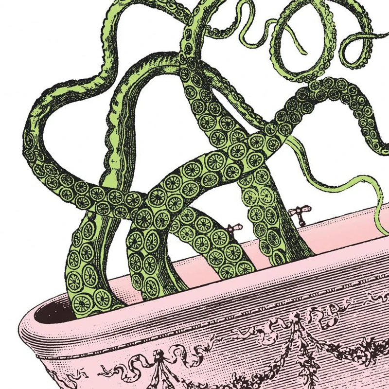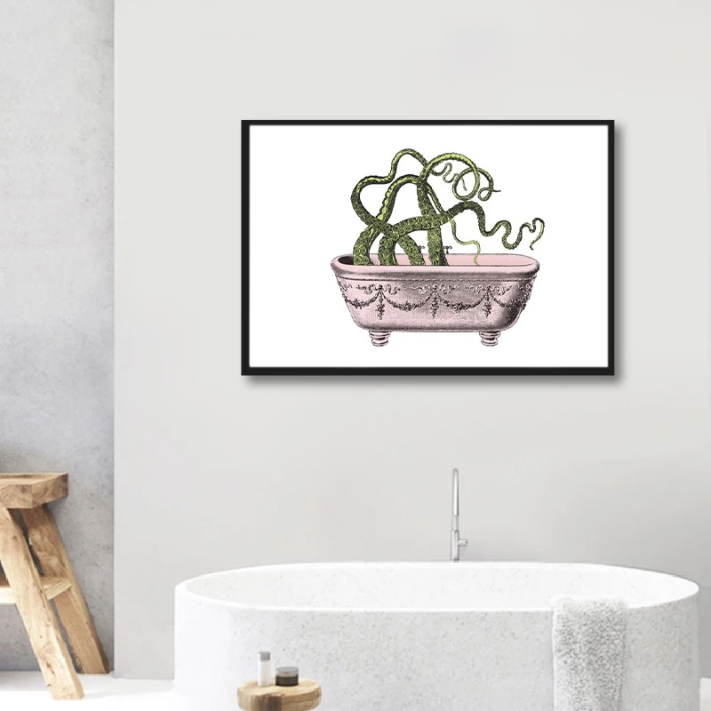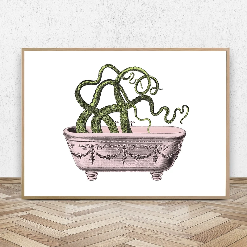 Купание осьминога печать розовый и зеленый издание постер Забавный Ванная комната стены искусства холст картина украшение