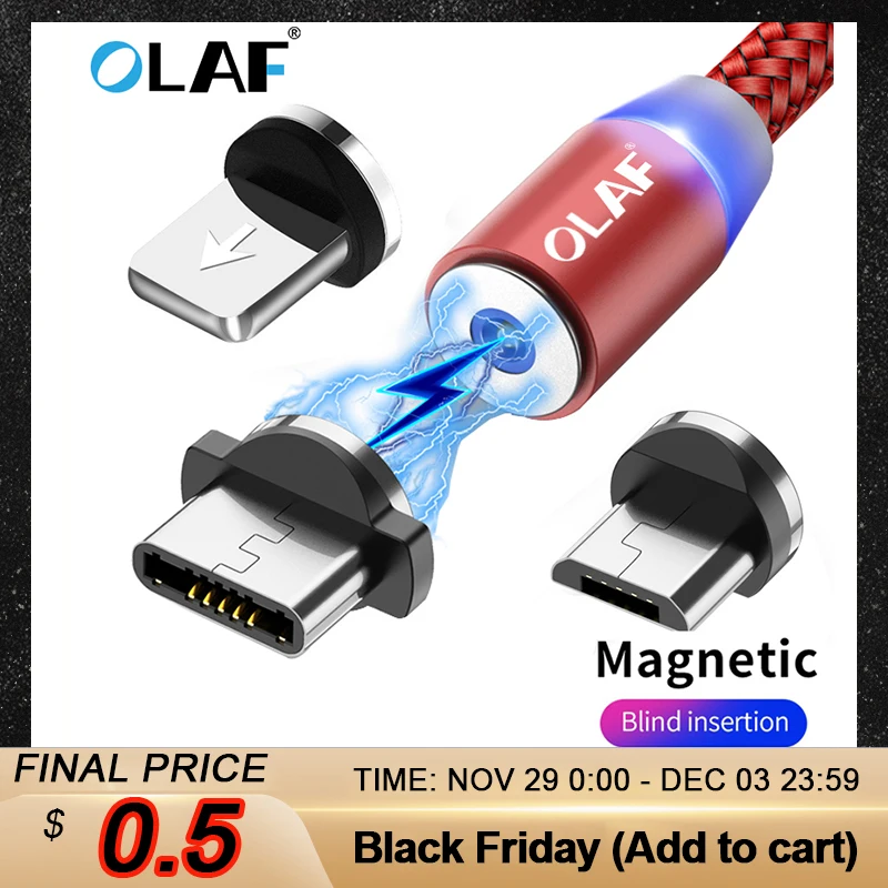 Магнитный кабель OLAF 3A, 2 м, зарядный шнур для телефона, кабель Micro USB, магнитное зарядное устройство, быстрый USB Type C USB C кабель для iPhone 11 Samsung