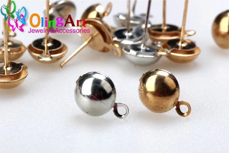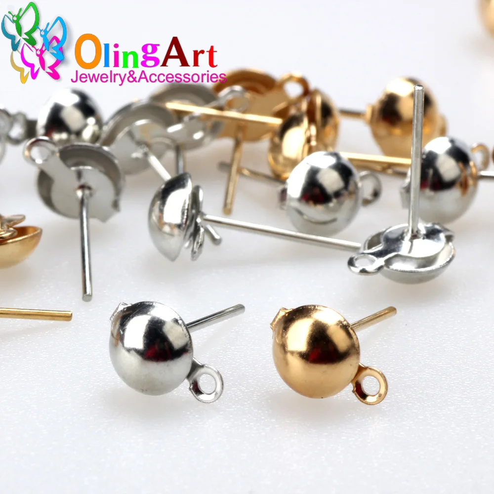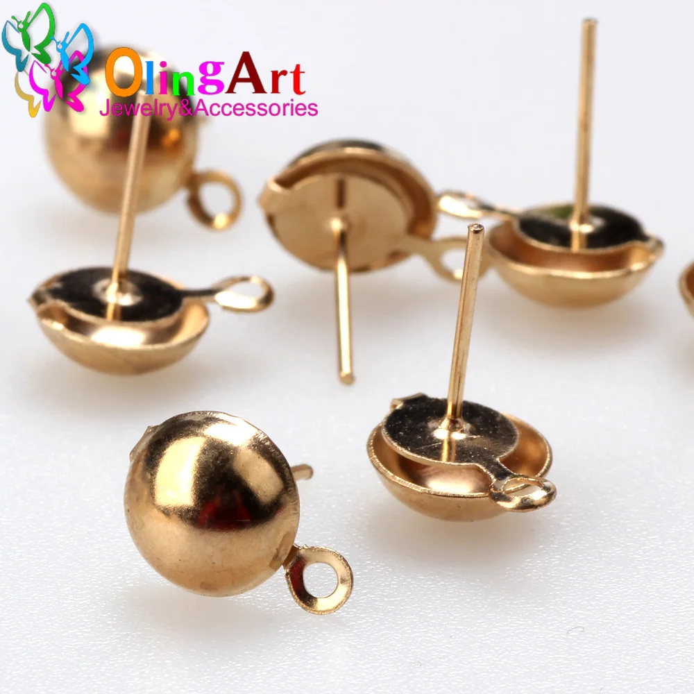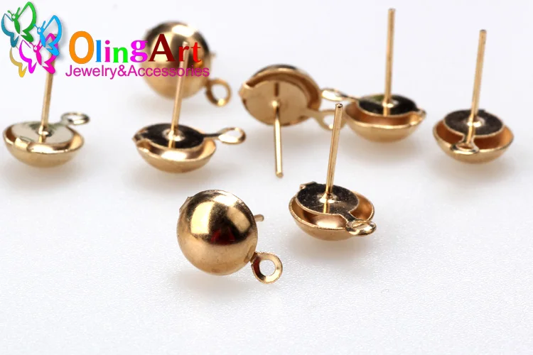 Olingart 50 шт./лот 5/6/8 мм, покрыто золотом, серебром, серьги-гвоздики в форме пустой базы Fit кабошоны принадлежности столб уха серьги "сделай сам" для изготовления ювелирных изделий