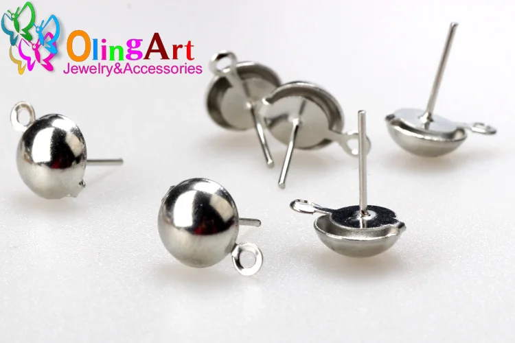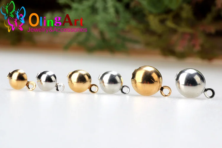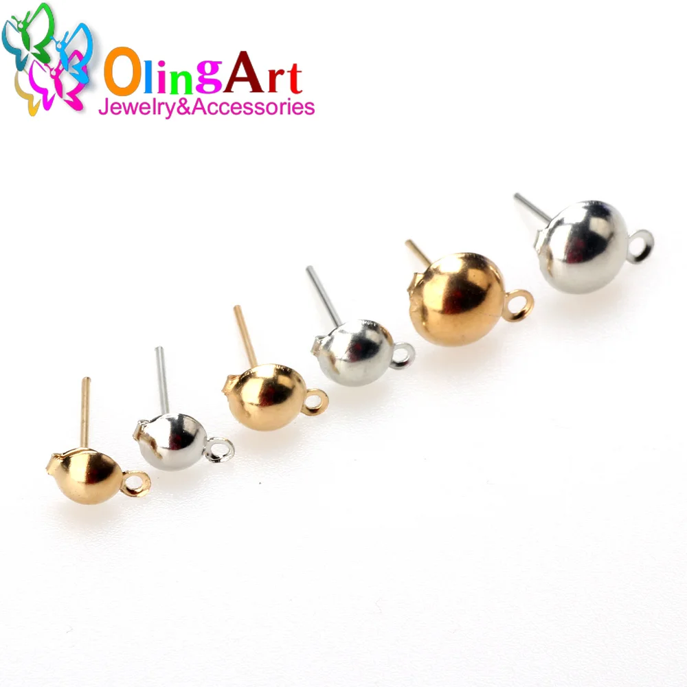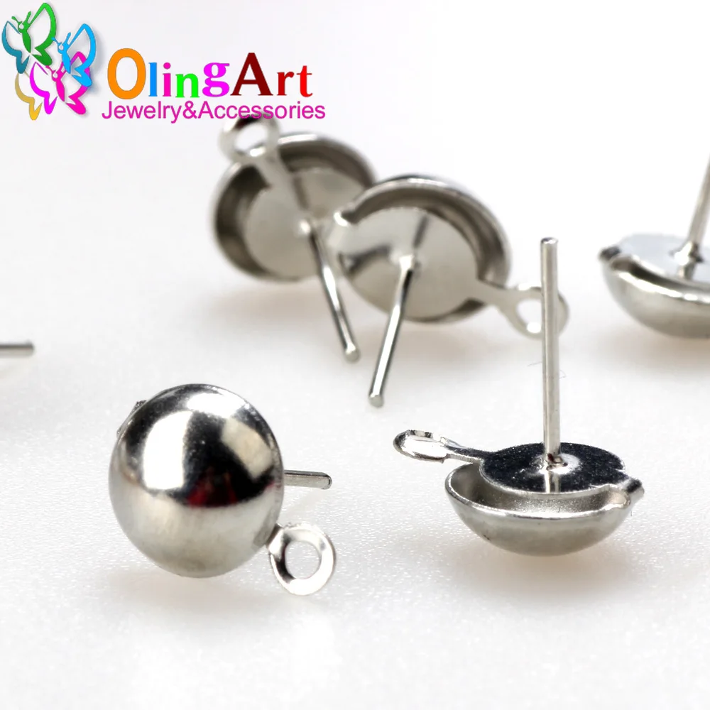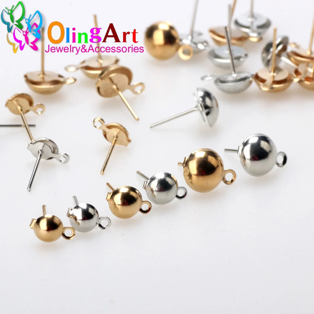 Olingart 50 шт./лот 5/6/8 мм, покрыто золотом, серебром, серьги-гвоздики в форме пустой базы Fit кабошоны принадлежности столб уха серьги "сделай сам" для изготовления ювелирных изделий
