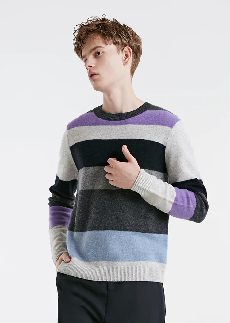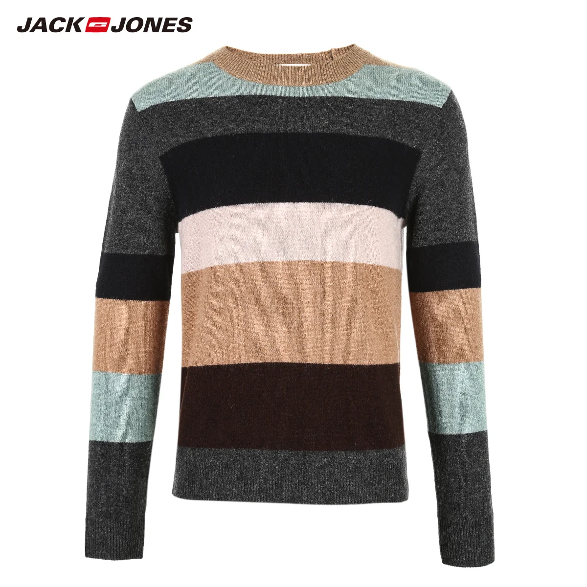 JackJones зимний мужской шерстяной свитер в полоску с круглым вырезом 219125503