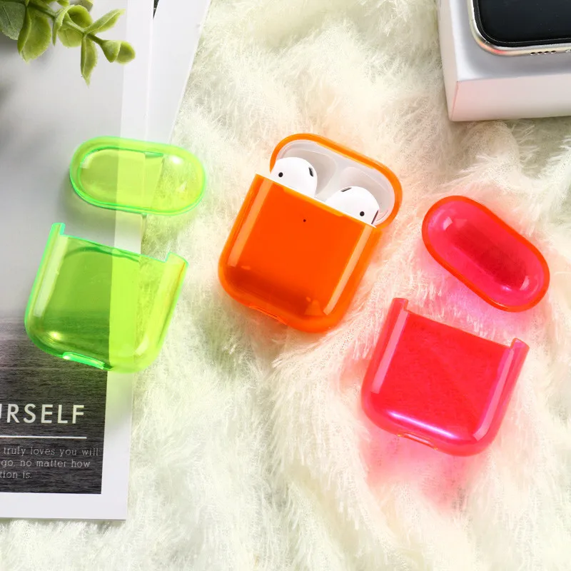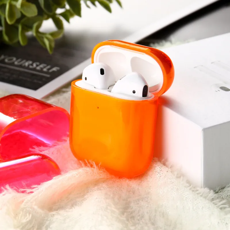 Чехол-накладка для AirPods 2, яркие цвета, прозрачный, жесткий