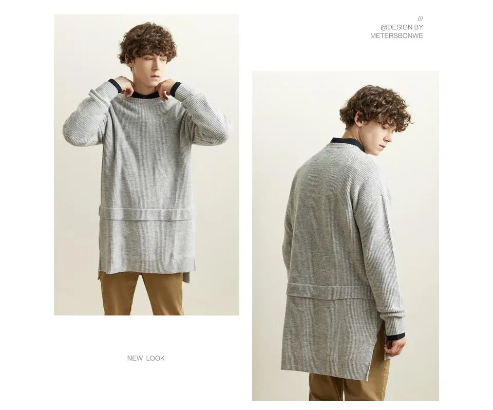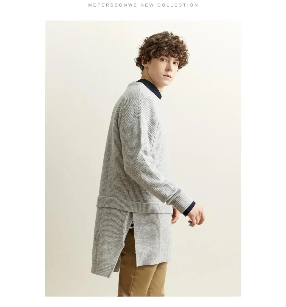 Новый длинный свитер Metersbonwe, Мужская модная трикотажная одежда с длинным рукавом, Красивый хлопковый свитер для отдыха, одежда высокого качества