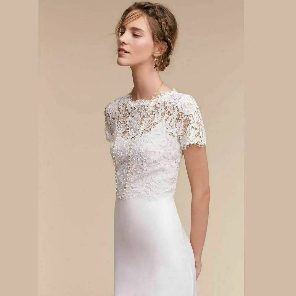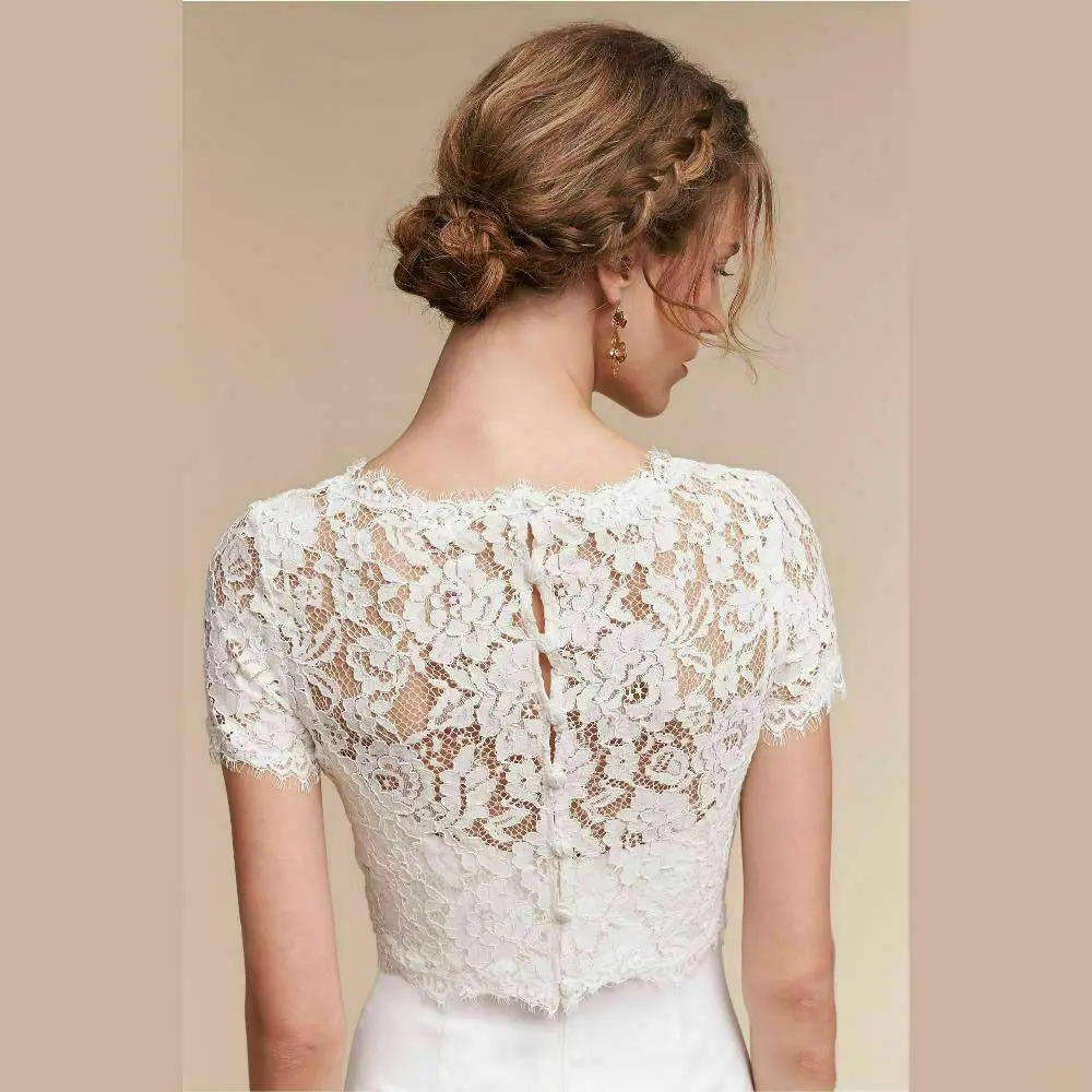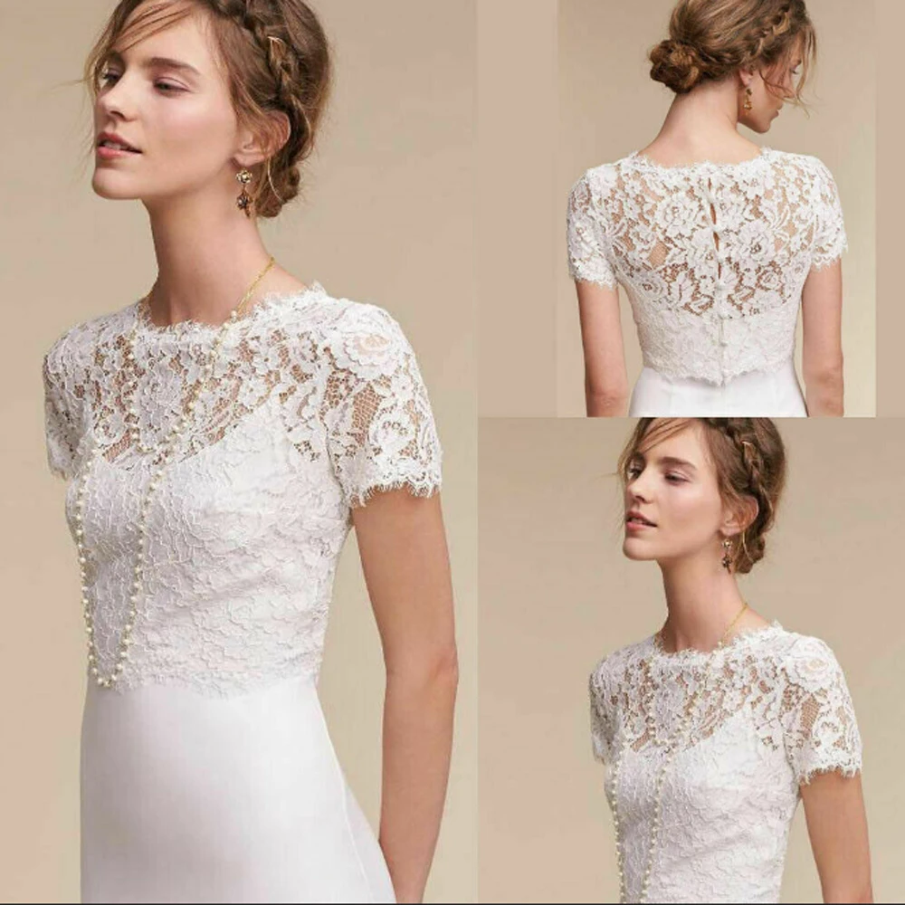 Женское свадебное болеро с коротким рукавом, кружевной топ с запахом, официальное вечервечерние свадьбы