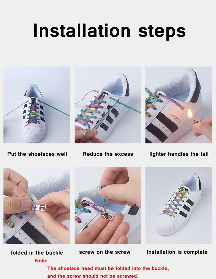 Посылка включает в себя: (пакет Opp) шнурки 2 шт. + серебряный замок 4 шт. (набор) + винт 4 шт. + отвертка 1 шт.
