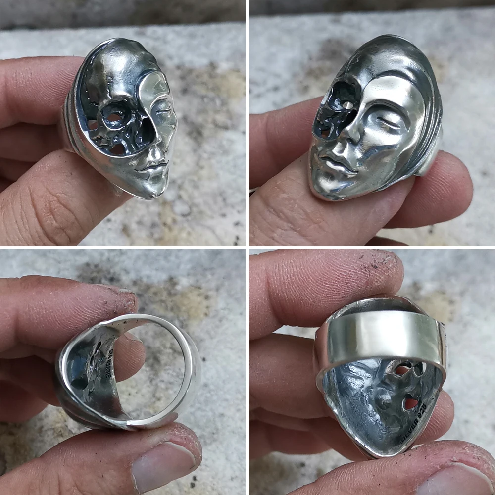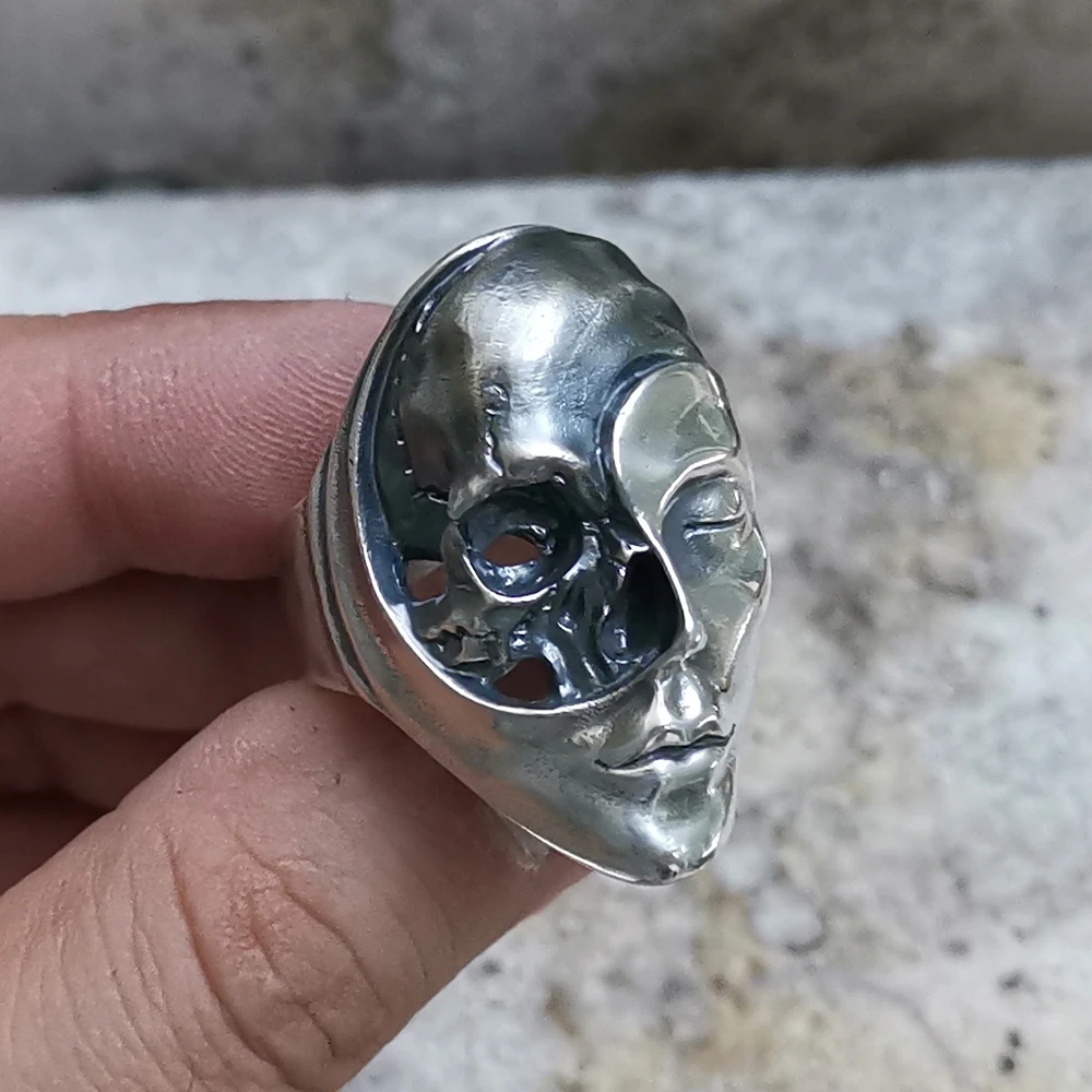 LINSION 925 пробы Серебряная жизнь смерти рай ад череп лицо Кольцо мужское панк кольцо TA179 США Размер 7 15