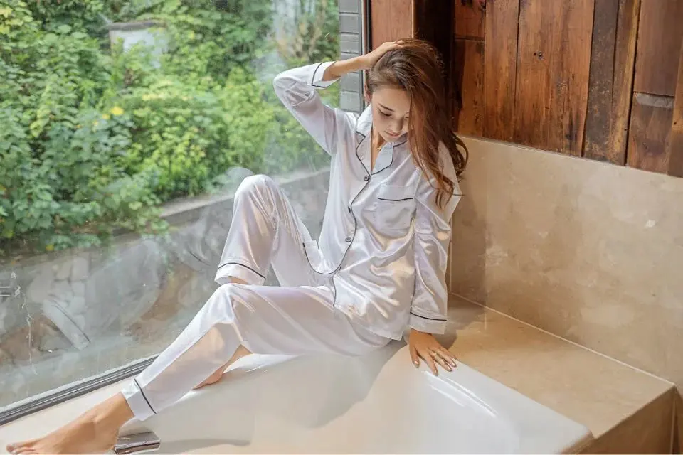 Пижама женская, Кардиган с длинным Шелковая пижама с рукавами