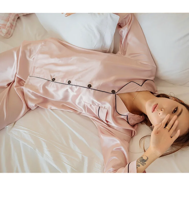 Пижамы для женщин, шелковые пижамы, однотонная одежда для сна, атла...