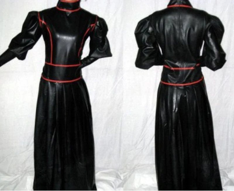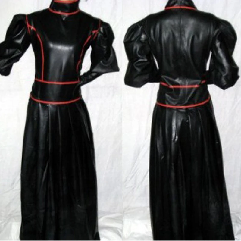 Длинное латексное женское платье горничной, сзади молния на талии, без перчаток