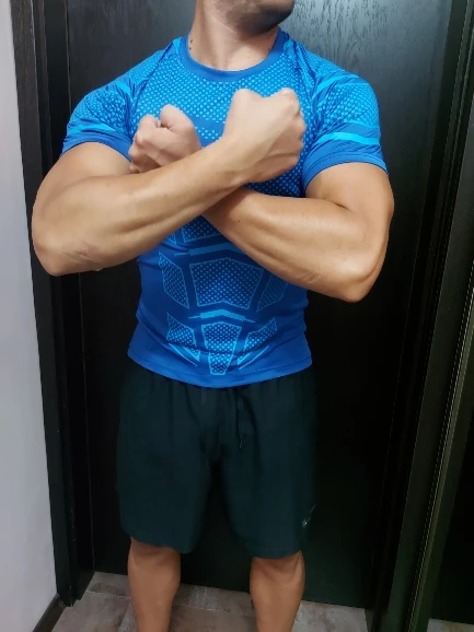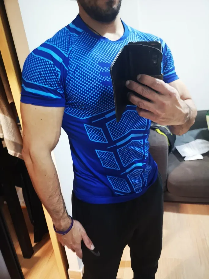 Футболка хорошо сшита, нитки не торчат, швы ровные. Материал полиэстер в чистом виде. Но рисунок из прорезиненых элементов создает ощущение скафандра. По размеру на свой М взял asian XL чтобы была немного свободной, кто любит в обтяжку заказывайте в размер или чуть больше. По доставке - продавец отправил не сразу, но доставка довольно быстрая, до Хабаровска за 21день. с продавцом не общался, не было нужды. В целом товар хороший, но больше заказывать не буду