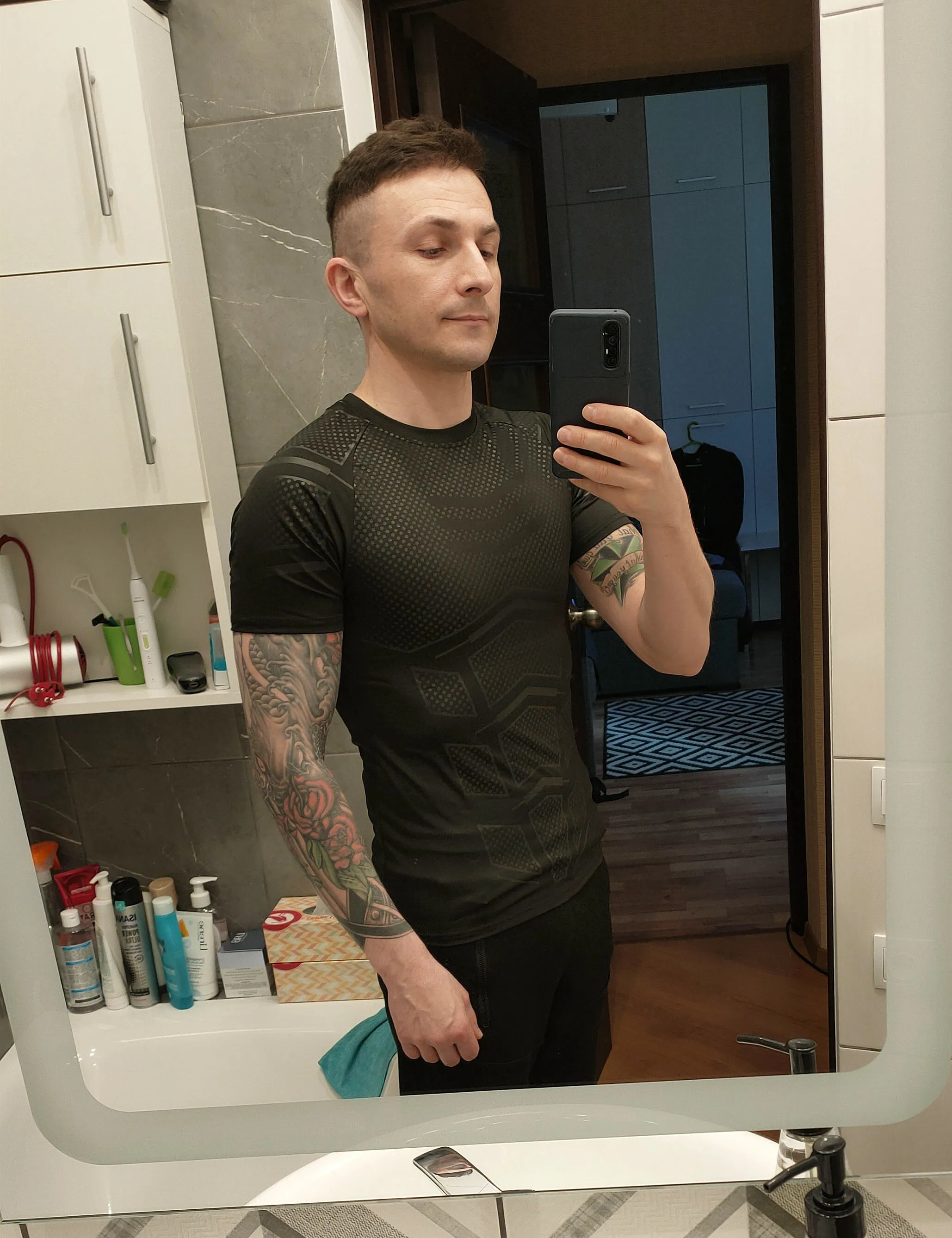 Доставка в течение 20 дней. Продукт потрясающий на первом касании. Я надеюсь, что он не садится или не потеряется после стирки, он был немного липким, когда впервые открылся. 172 см 78 кг L хорошо подходит.