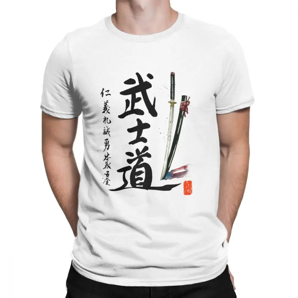 Бусидо и семь преимуществ самурая с Катана Для Мужчин's футболки Новинка натуральный хлопок футболки для девочек футболки с круглым вырезом, футболки размера плюс, топы