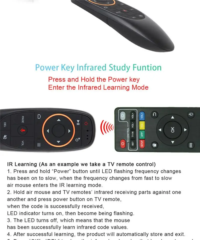 17 клавиш air mouse, легко контролировать громкость, страницу вверх/вниз, мышь влево/вправо и т. д. просто сидеть на диване и наслаждаться.