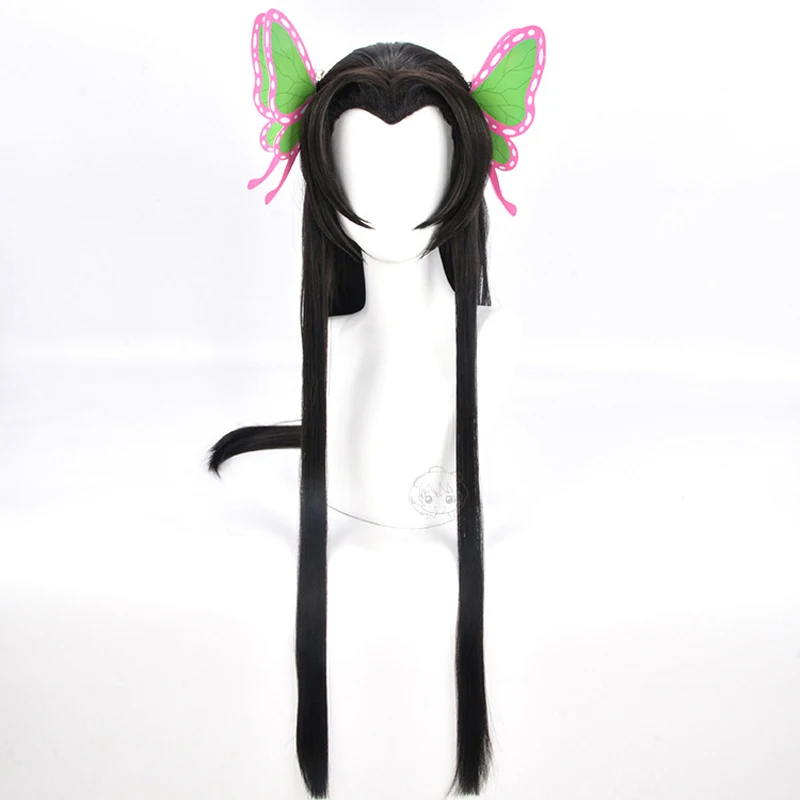 Парик для косплея Кании из клинка рассекающего демонов, длинный черный прямой слабый кончик, синтетические волосы + шпилька + парик