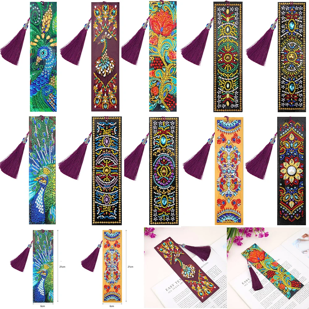 HUACAN 5D алмазная картина Закладка особой формы Алмазная вышивка крестиком кожаная книжка с кисточкой отметки