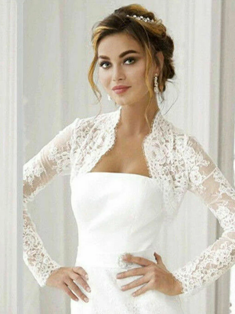Свадебное болеро, свадебные жакеты с длинным рукавом, кружевной топ, жакет для невесты белого цвета, цвета слоновой кости