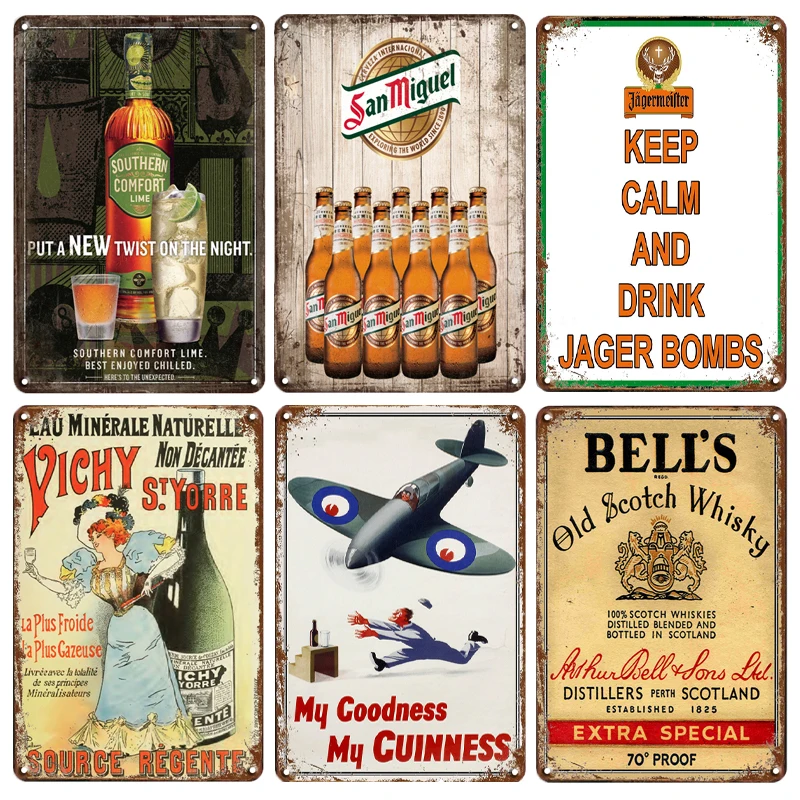 Наклейки с пивом жестяной винтажный постер для виски, металлическая...