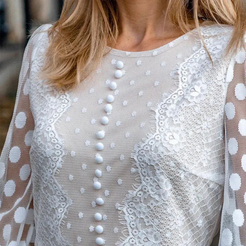 Весенние сексуальные сетчатые кружевные платья, женские вечерние платья с вышивкой и длинным рукавом, женское винтажное короткое платье в горошек размера плюс