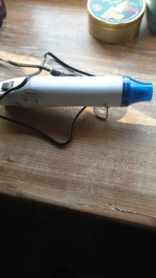 -После завершения Используйте тепловую пушку при высокой температуре, чтобы сдуть несколько минут,