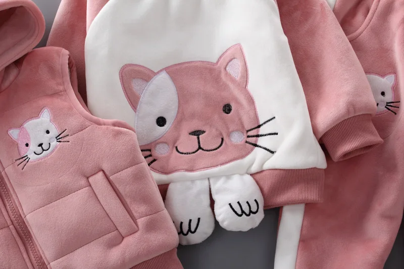 Детские зимние вельветовые толстовки, штаны, костюм из 3 предметов с мультяшным котом для маленьких девочек и мальчиков, жилет, рубашка + штаны на 1 - 4 года, комплект одежды для малыша