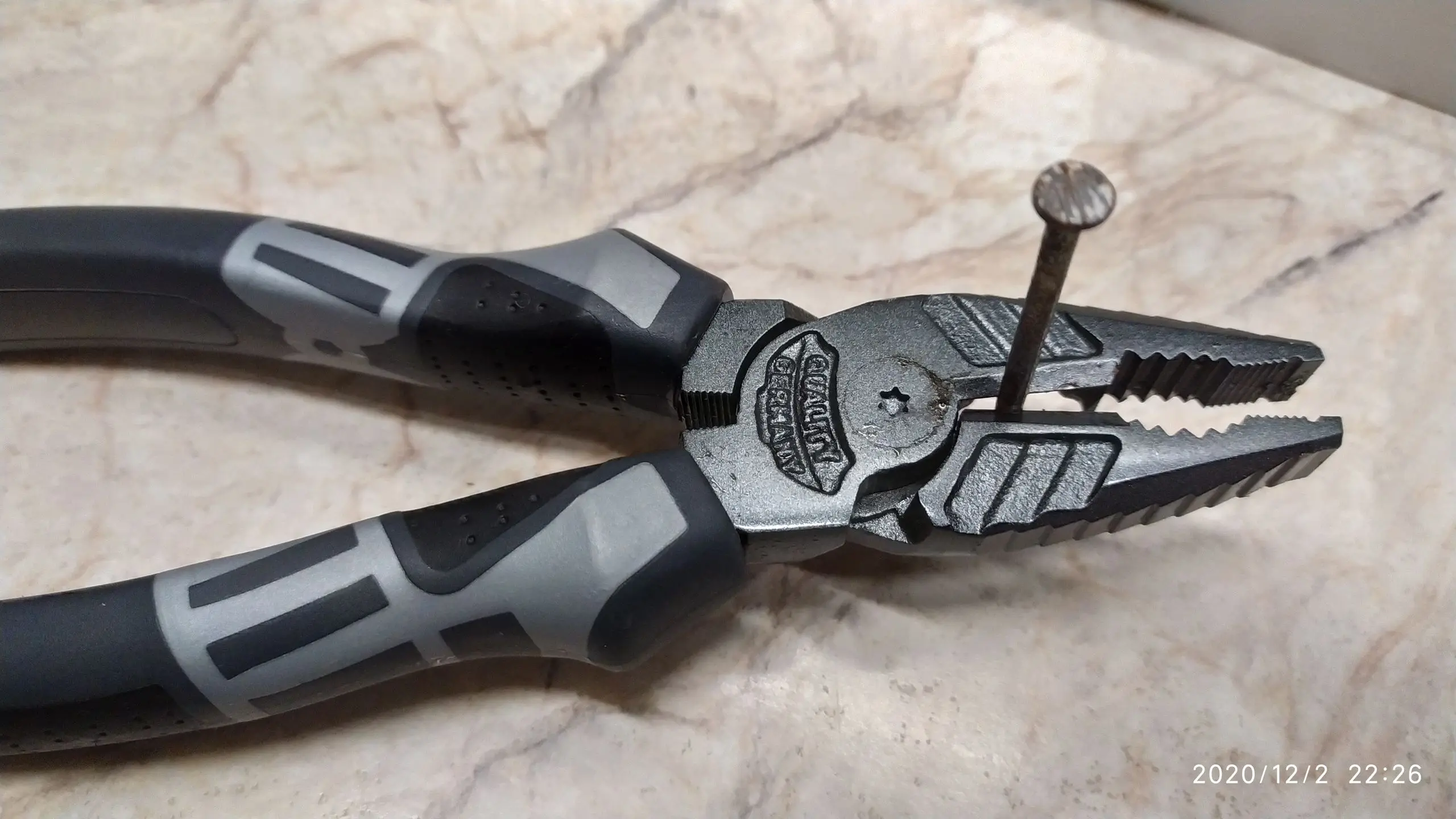 Получил на отделении НП где то через две недели. Цвет не тот, описание странное, из чего сделаны - непонятно, на вид ничё так, в руке лежат удобно, кажутся лёгкими, но вес 309грамм. На гвозде 70тке вот такие следы, а губки повредил пытаясь вытащить 70 саморез по дереву, у которого отвалилась башка, не получилось, пришлось сломать торчащий кусок.