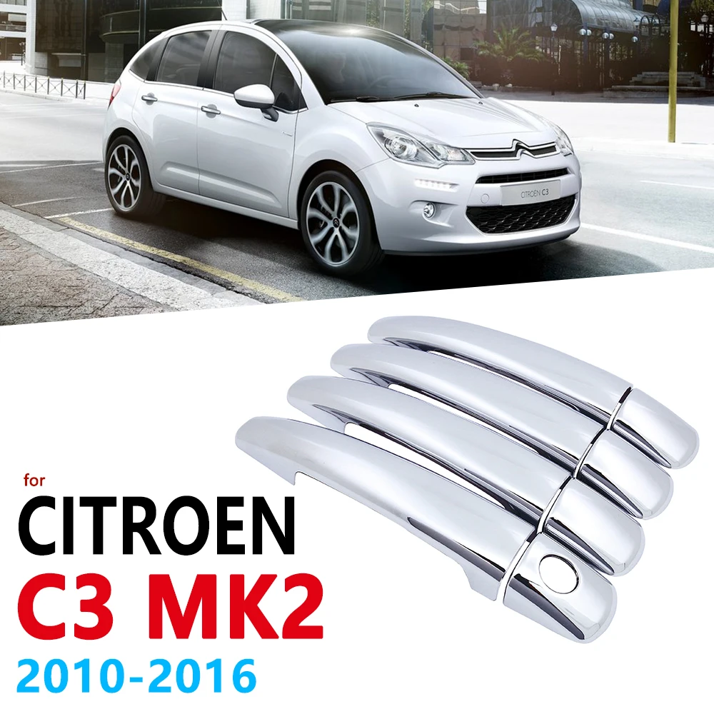 Хромированную ручку Накладка для Citroen C3 Mk2 2010 2016 4-для двери автомобиля Elantra Accent Tucson аксессуары наклейки для укладки волос 2009 2010 2011 2012 2013 2014 2015