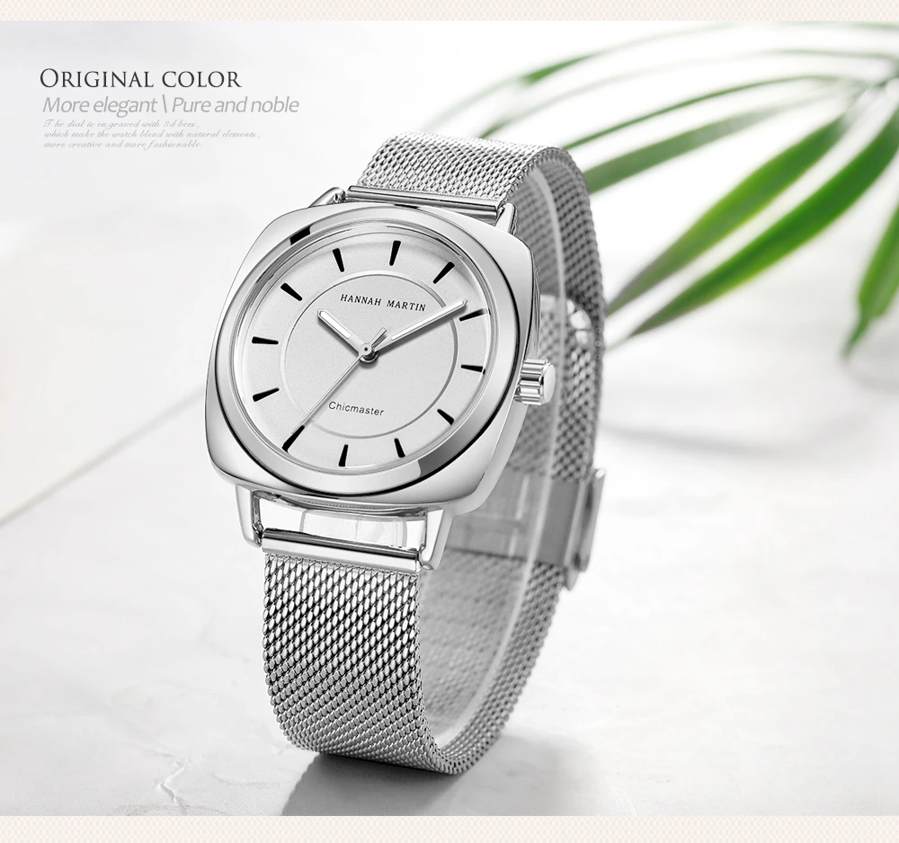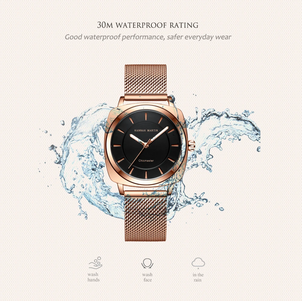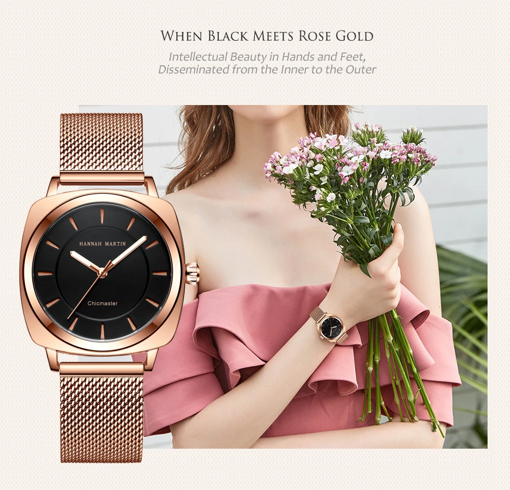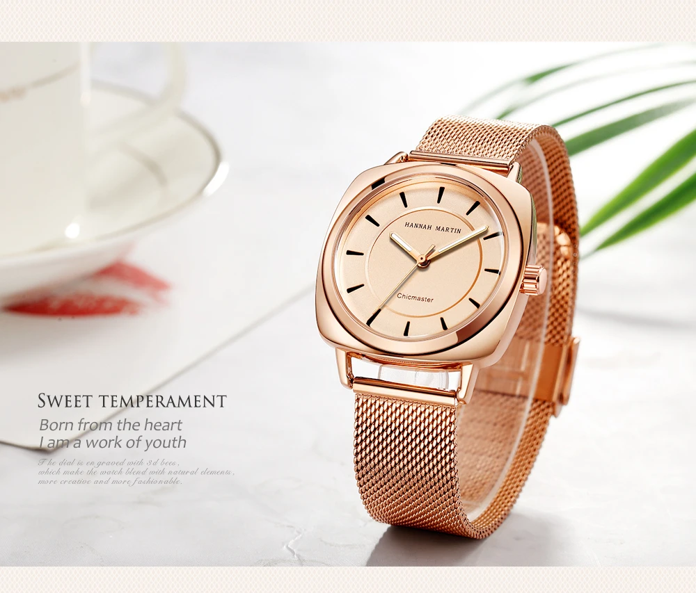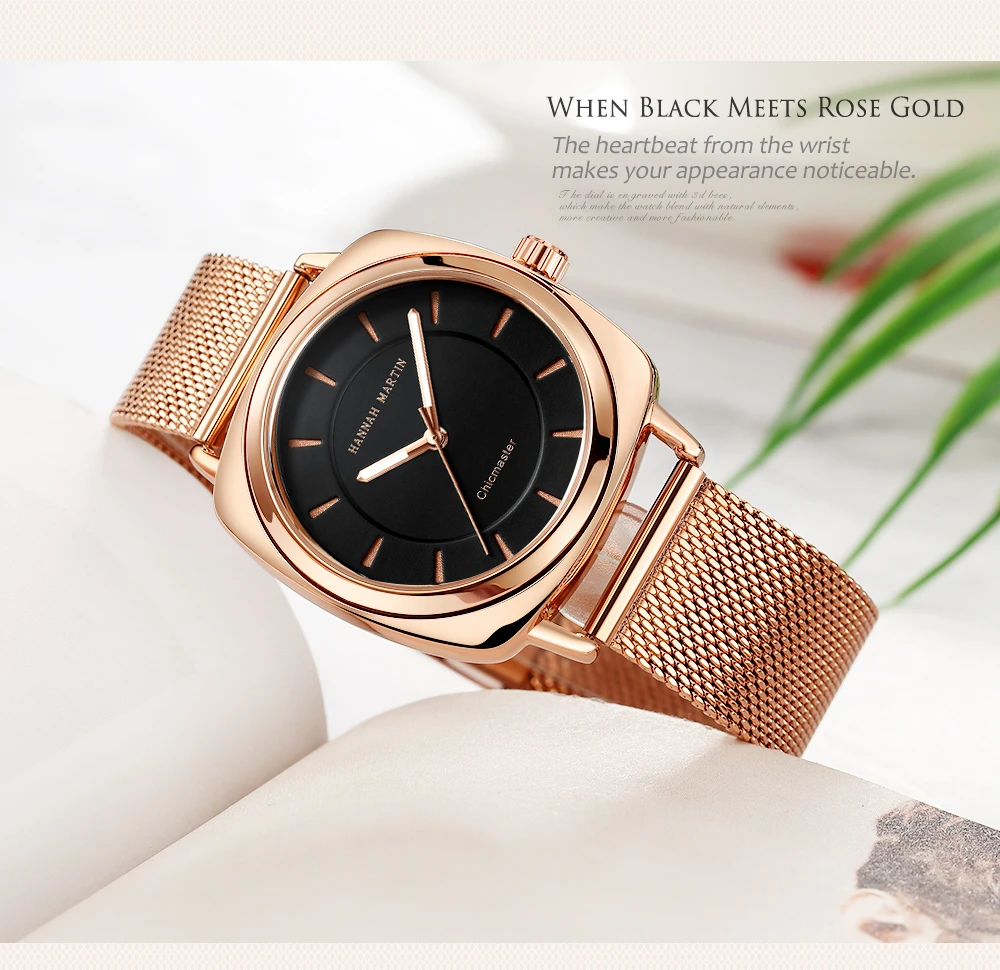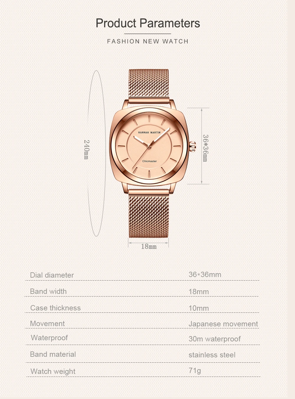 Дропшиппинг Япония кварц Мода креативный квадратный дизайн водонепроницаемый розовое золото Нержавеющая сталь сетка 1 комплект браслет женские часы