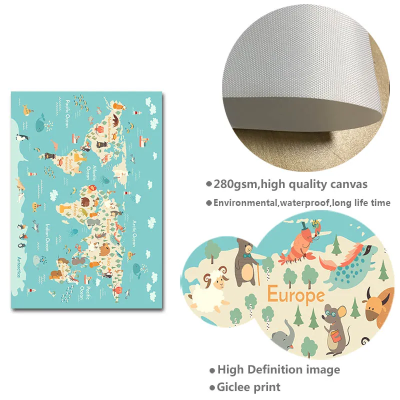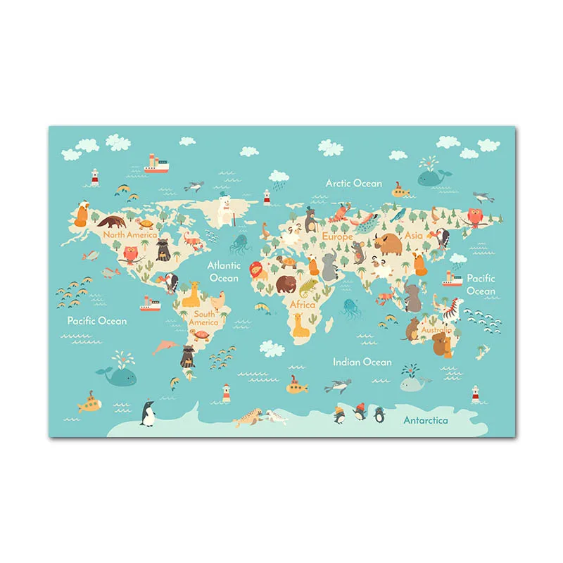 Мультяшные животные океан карта мира ребенок плакат для детской холст печать ребенок просвещение настенная живопись картина для спальни Декор