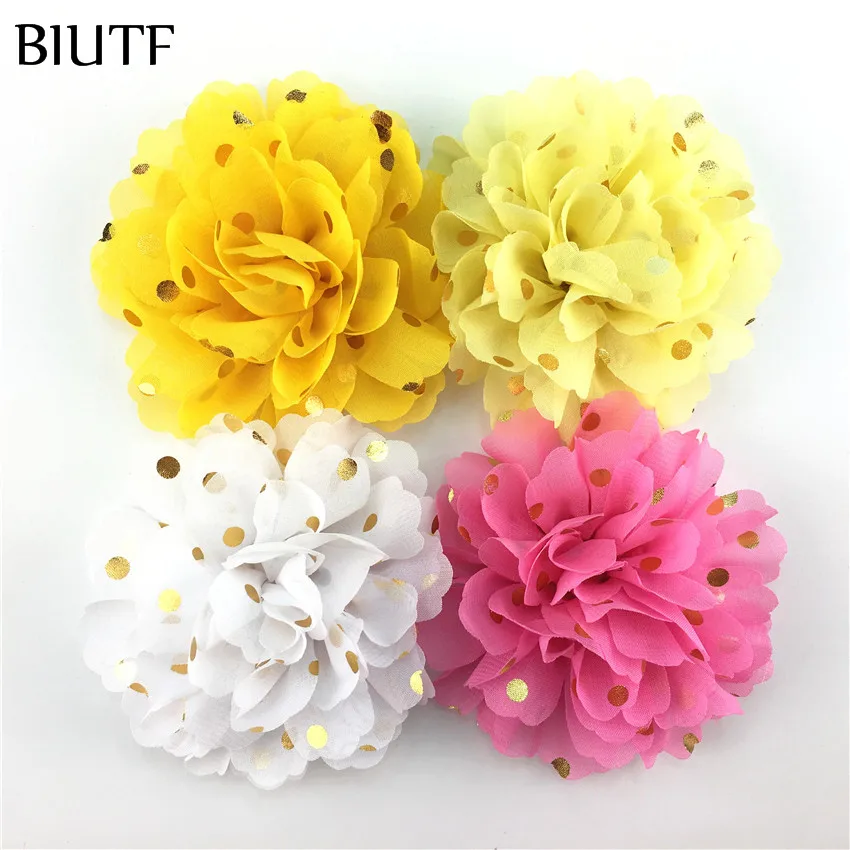 5 шт.лот 10 см Искусственный Золотой горошек Шифоновый Цветок с заколкой для волос или без заколки DIY для головных уборов аксессуары H0251