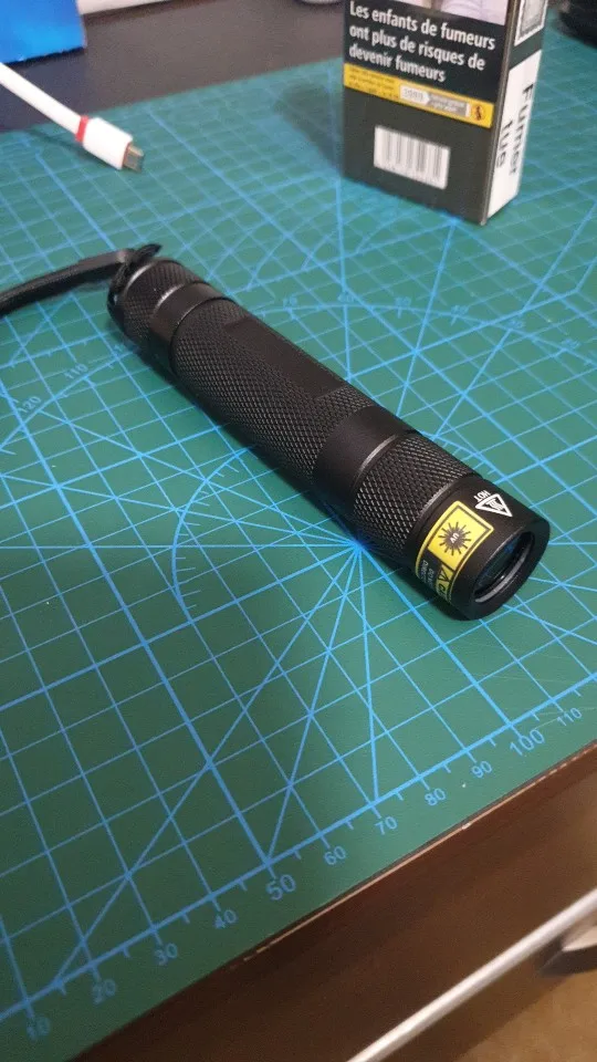 Это очень мощный УФ-фонарик. В темноте он легко освещает предметы на расстоянии около 10 м. Потрясающе то, что вы можете видеть с помощью этого фонарика в темноте, что вы никогда не видите в ярком свете. Это хорошее качество света с твердым металлическим корпусом, 18650 литиевая батарея и зарядное устройство были включены. Он был очень быстро отправлен и прибыл в хорошем состоянии. Я рекомендую этот товар и магазин.
