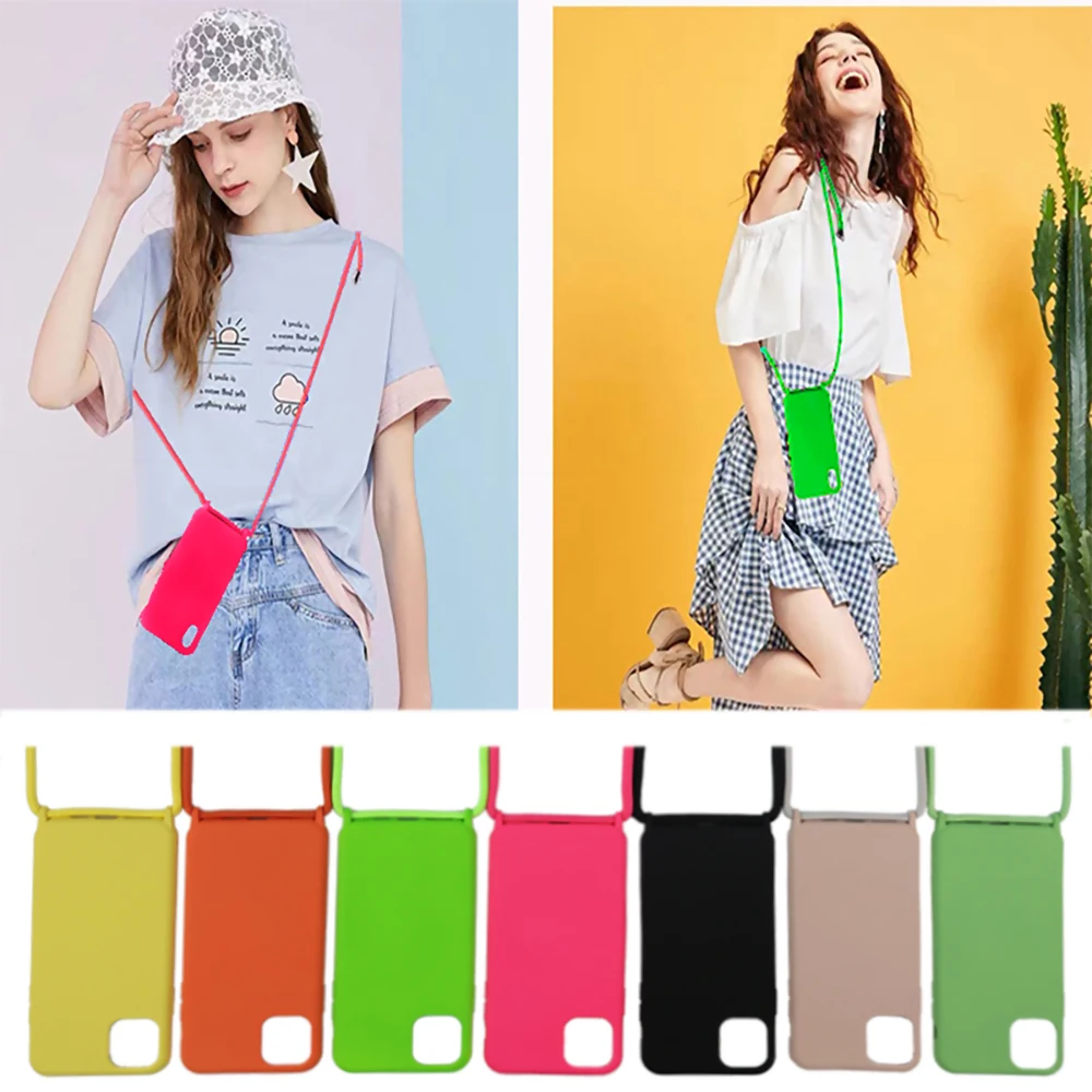 Чехол с ремешком из жидкого силикона для iPhone 6 7 8 Plus 12 11 pro Xs Max Xr, чехол с шейным ремешком, шнур через плечо для ожерелья
