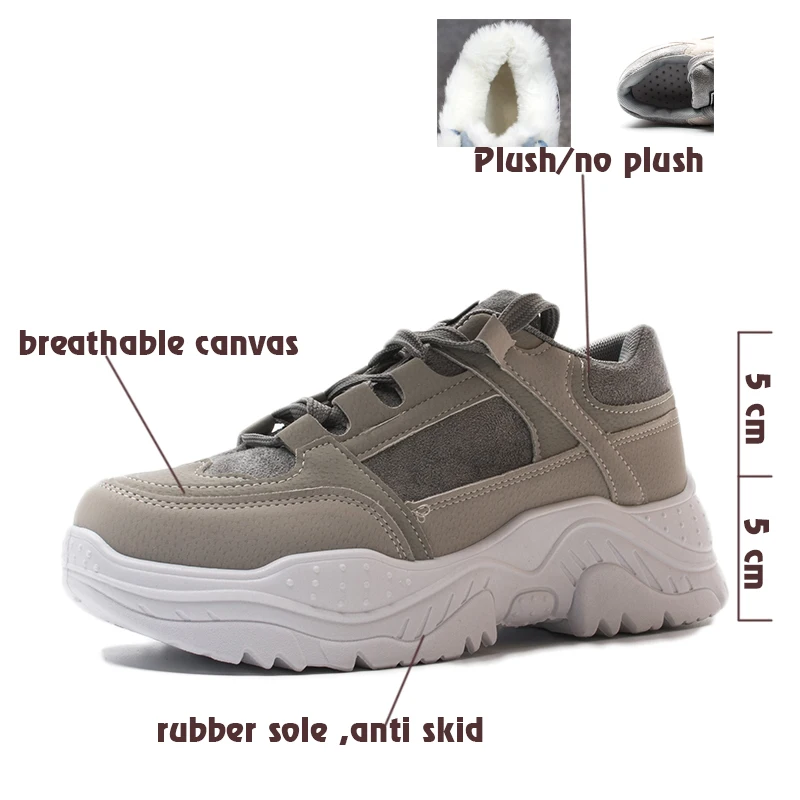 Fujinженские кроссовки; Зимняя обувь; Кроссовки на платформе с плюш...