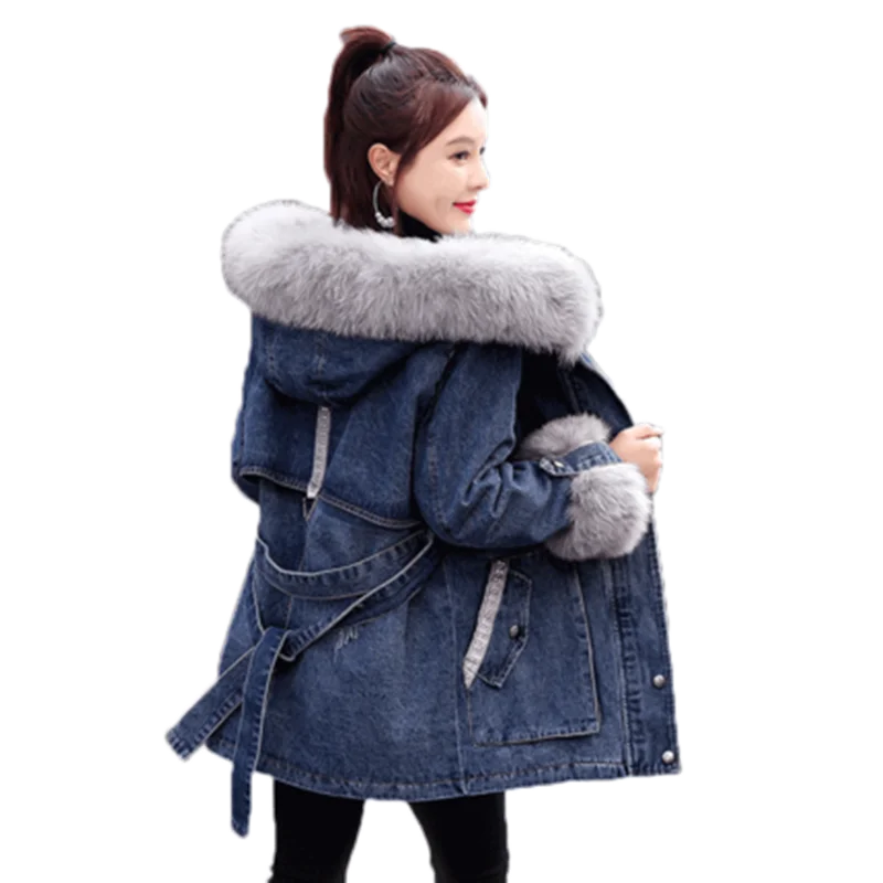 Женская джинсовая куртка FNOCE, зимняя утепленная куртка с меховым ...