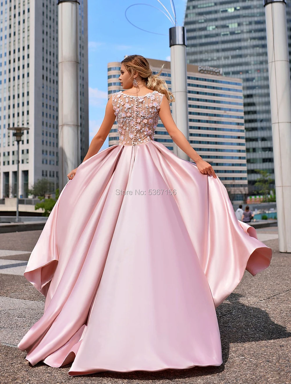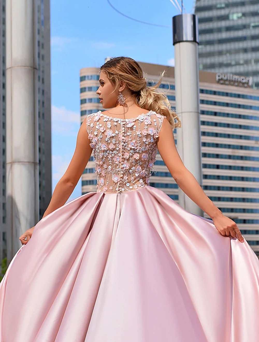 Розовые платья для выпускного вечера ТРАПЕЦИЕВИДНОЕ платье без рукавов с объемными цветами и пуговицами вечернее платье Robe De Soiree